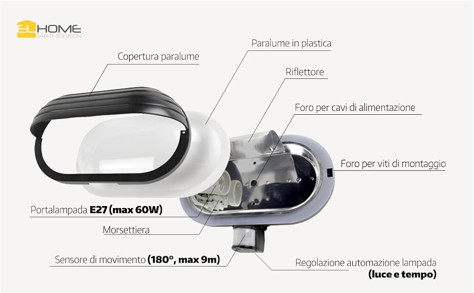 Lampada Solare Da Esterno Applique A Soffitto Ezy LED Con Sensore Di Movimento, In Polipropilene, Bianco, 12W 1500LM Luci Da Esterno per una lampadina con attacco E27 e potenza massima di 60 W Intervallo di impostazione della soglia luce esterna: 3 lx - 2000 lx LAMPADA ML-10B7 CON Sensore Di Movimento 180° PIR, E27 – per Esterni, Applique, - EUR 26,99. IN VENDITA! DESCRIZIONE: per una lampadina con attacco E27 e potenza massima di 226061529110 Fattore di protezione: IP54