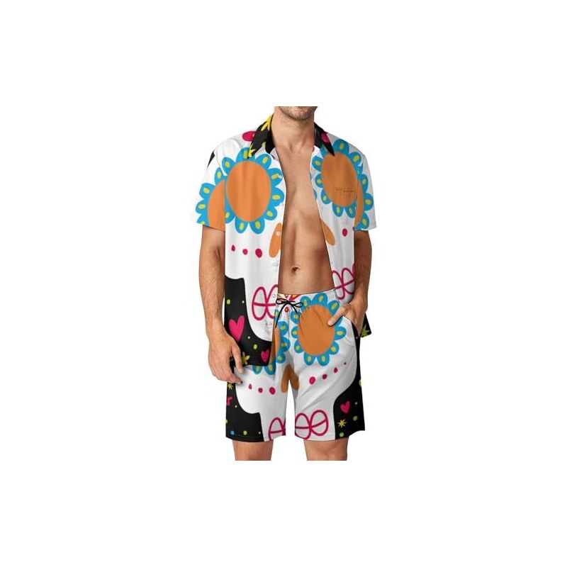 FENAC Teschio Carino Uomo Hawaiana Camicia E Pantaloncini Button Down Manica Corta Da Spiaggia Xl 126193528