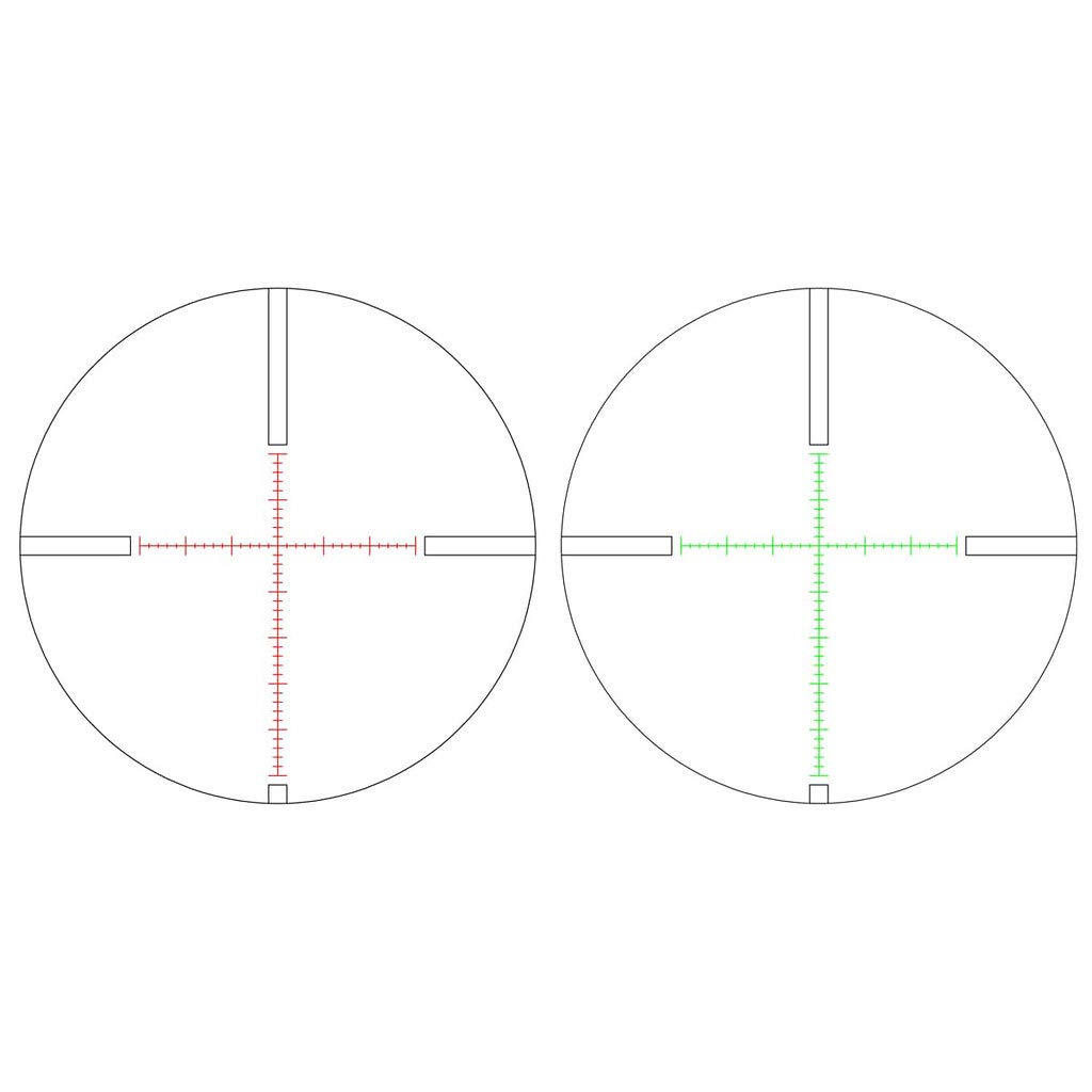 The illunimation has stepless brightness. Turret lock sytem. Pull to adjust, press to lock. Vector Optics Sentinel 6-24x50mm, 1/8 MOA, 30 mm Tube, Red & Green Illuminated Second Focal Plane (SFP) Riflescope Package Includes:- 1 x 6-24x50 Riflescope- 2 x 30mm weaver mount ring (default) or dovetail mount ring (on request only)- 1 x Lens Cover- 1 x Cleaning cloth 5 years warranty. 30mm Monotube. Side Focus starts at 15 Yard. Two 30mm scope mount rings can be easily mounted onto any 20mm Picatinny or Weaver mount rails. O-ring Sealed and Nitrogen Purged Ensure Water Resistance and Fog Proof performance; Shockproof to 750g. Specifications:Magnification: 6-24xObjective Lens Dia.:50mmTube Dia. 1/8 MOA windage and elevation adjustments for fine-tuning accuracy. 30mmAdjustment Click Value: 1/8 MOAReticle: MPIllumination: Red & GreenOcular Dia: 44mm(1.7 inch)Ocular Length: 67mm(2.6 inch)Field of View: 16.5-4.3 Feet?@?100?yardsEye Relief: 80-100mm (3.1-3.9 inch)Exit Pupil: 2.1-8.3mmElevation Range: 50 MOAWindage Range: 50 MOALens Coating: Fully multicoatedLength: 385mm (15.1 inch)Weight: 755g (26.6 ounce)Finish: MatteBattery: CR2032(EXCLUDED)Distance between objective lens part and middle turret: 60mm (2.4 inch)Length of middle turret part: 61mm (2.4 inch)Distance between middle turret part to power ring: 40mm (1.6 inch)Diopter compensation from fast-focus eyepiece (+2 to -2.5)Features:5 Years Warranty30mm Monotube. Center Dot 1/8MOA Rifle Scope Vector Optics Sentinel Luneta 6-24x50 FFP Illuminated Scope With Zero Stop 30MM Tube Scope Click Lock
