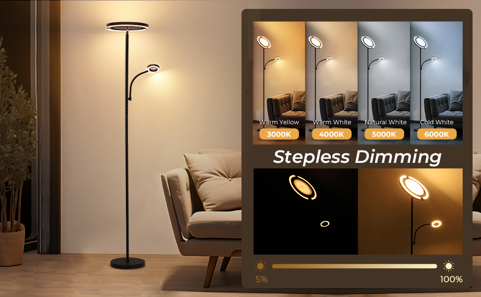 Quando non desideri un'illuminazione troppo intensa nella stanza, o quando leggi di notte, per risparmiare energia, la piccola lampada è un'ottima scelta. Se hai domande o hai bisogno di assistenza, non esitare a contattarci in qualsiasi momento. 【Regolazione Continua della Temperatura del Colore e della Luminosità】La temperatura del colore della lampada da terra a LED può essere regolata a luce calda 3000K, luce bianca fredda 4000K, luce diurna bianca 5000K e luce bianca fredda 6000K. Compra FIMEI Lampada da Terra, Lampada da Lettura, Dimmerazione Continua & Temperatura del Colore 3000K-6000K, Controllo Remoto & Touch, Lampada da Terra Uplighter per Soggiorno, Ufficio a prezzi vantaggiosi su . Spedizione Gratuita + Consegna in La lampada superiore è da 20W con 1300 lumen, mentre la piccola lampada da lettura è da 7W con 300 lumen. 【Lampada da Terra Moderna e Unica Rotabile】L'innovativa lampada da terra FIMEI con design diviso presenta due parti di luce ad anello semicircolare che possono essere ruotate separatamente per illuminare la tua casa, camera da letto o ufficio con una gamma più ampia. Lampada Da Terra Led FIMEI Lampada Da Terra A Arco Soggiorno, Altezza 187cm, LED Dimmerabile Con Temperatura Colore Regolabile, Lampada Alta Con Paralume A Tamburo & Telecomando, 9W LED Per Lettura, Camera, Ufficio : Amazon.it: Illuminazione Piantana Led Da Terra 【Servizio 24 mesi】Goditi la massima tranquillità con il nostro servizio 24 mesi. 【Due Metodi di Controllo e Funzione di Memoria】La lampada da terra alta FIMEI può essere controllata tramite il pulsante touch sulla lampada e il telecomando. Inoltre, la luminosità della lampada da terra è regolabile dal 5% al 100% secondo le tue esigenze. Il telecomando può essere attaccato e conservato sul palo della lampada per una comoda conservazione. Con una comoda funzione di memoria, la lampada da terra con telecomando ricorderà le impostazioni della luce precedenti quando viene riaccesa.