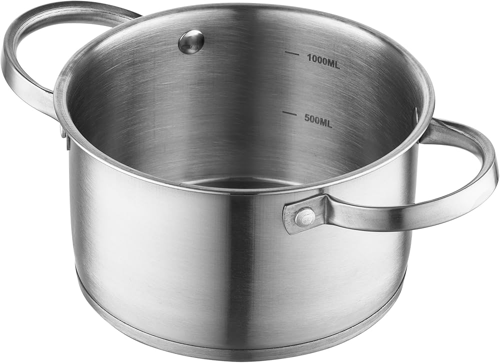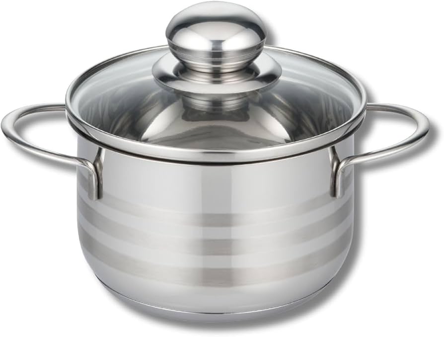FLORINA Pentola In Acciaio Inox (1,3 L) 14 Cm I Pentola Con Coperchio In Vetro OLIVER I Adatta Alla Lavastoviglie I Pentola Per Pasta, Zuppa I Ideale Per Tutti I Tipi Di