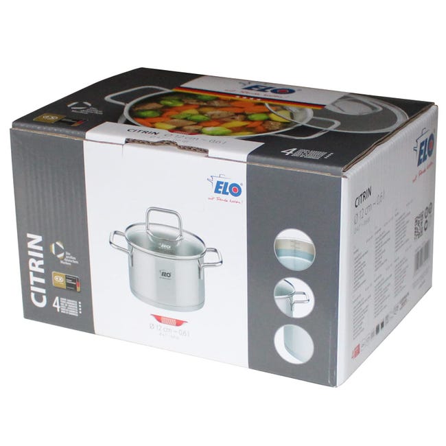Manutenzione: lavabile in lavastoviglie Pentola in acciaio Inox; Disco in acciaio ferritico per induzione; 1 manico in acciaio Inox; Adatta per i piani cottura a induzione, gas, elettrica e radiante Manutenzione: il prodotto è lavabile in lavastoviglie COMPOSIZIONE: Acciaio inossidabile, Vetro Dimensioni: 13,5 x 19 x 14 cm (dimensioni esterne), 12 cm di diametro (dimensioni interne). DIMENSIONS : 13,5x19x14cm (dimensions extérieures), 12cm de diamètre (dimensions intérieures) Contenuto della confezione: 1 pentola da 12 cm di diametro e coperchio in vetro Garanzia : 4 anni La pentola è compatibile con tutti i tipi di fornelli, anche induzione. Istruzioni per l'uso: Il prodotto è lavabile in lavastoviglie. Dimensioni: 12 x 8 cm. Elo vi propone questa pentola in acciaio inox di 12 cm di diametro. Pentolino Latte Induzione FLORINA Pentola In Acciaio Inox (1,3 L) 14 Cm I Pentola Con Coperchio In Vetro OLIVER I Adatta Alla Lavastoviglie I Pentola Per Pasta, Zuppa I Ideale Per Tutti I Tipi Di Pentolino Antiaderente Con questo prodotto potrete facilmente preparare ottimi piatti in salsa o cuocere la vostra pasta. Elo è un marchio tedesco che dal 1934 realizza utensili e pentole in acciaio inossidabile di alta qualità per facilitare la vita degli utenti.