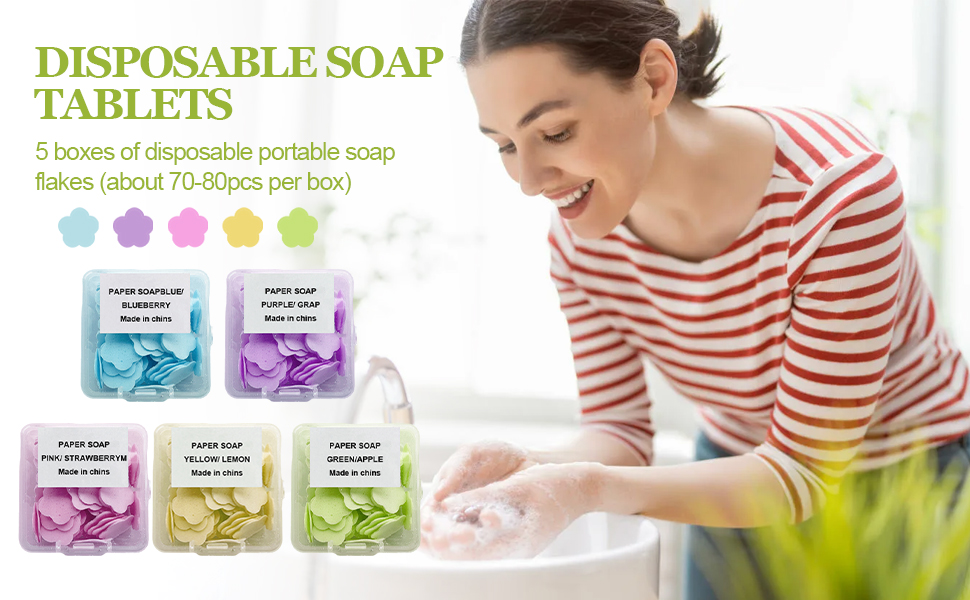 Fogli Di Sapone COCCO - Naturale Cosmetici Sapone Solido In Fogli Leggero e compatto, può essere facilmente inserito in portafogli, borse, borse per la scuola e mantenere le mani pulite in qualsiasi momento. Ci sono 5 colori rosa, blu, viola, verde, giallo, 4 scatole di ogni colore, per un totale di 20 scatole di sapone di carta, 20 fogli per scatola. Mini carta da viaggio, 6 scatole, fogli di sapone di carta, portatile, con 100 pezzi, per viaggi, campeggio, viaggi all'aperto (rosa, blu, verde Sapone di carta usa e getta ideale per appuntamenti, cene, gite di primavera, viaggi, picnic, campeggio e altre occasioni.