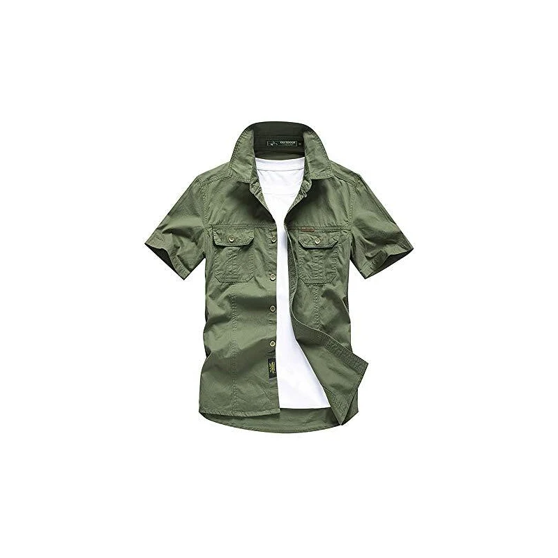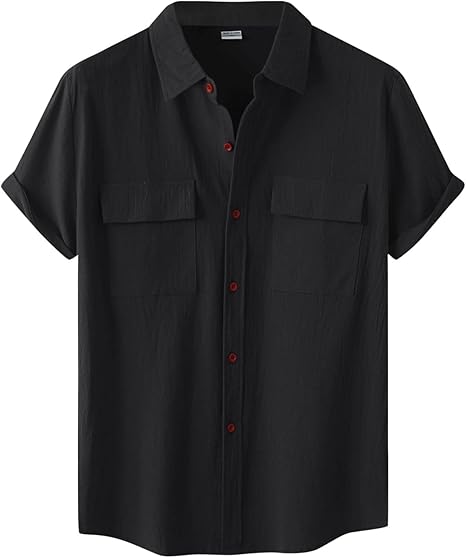 FRAUIT Camicia Uomo Lino Manica Corta Camicie Uomo Maniche Corte Slim Con Bottoni Sul Colletto