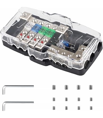QAQGEAR Scatola portafusibili a 4 vie 0/4ga Portafusibili a 4 vie 30A 60A 80A con terra Mini ANL Indicatore LED rosso per autoveicoli, barche, auto, camper, stereo COSA OTTIENI: 1x scatola dei fusibili, 12x viti, 2x chiavi inglesi, 5x fusibili AMPIA COMPATIBILITÀ: per auto, barca, camper, camion fuoristrada, SUV, ATV, UTV, marina e altro per la suddivisione della potenza Il Drivebox Pro PORTAFUSIBILI 4 FUSE BOX SCATOLA PORTA FUSIBILE AUTO MOTO CAMPER NAUTICA 1 KIT Stereo Barca Il blocco fusibili WUPP Automotive indicherà esattamente dove c'è un cortocircuito o qualsiasi altro guasto in modo da poterlo identificare facilmente e cambiarlo INDICATORE DI AVVISO: la spia LED si accende immediatamente quando il fusibile corrispondente è bruciato.