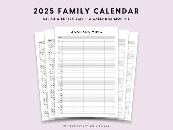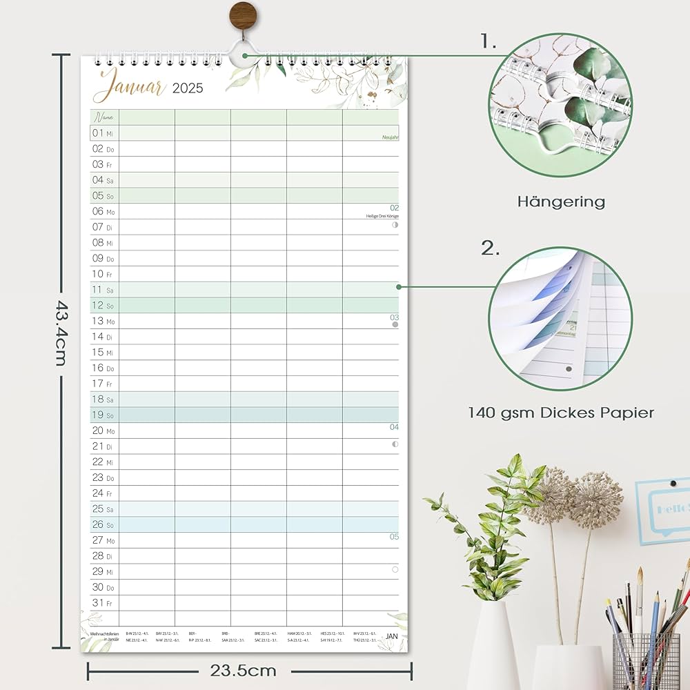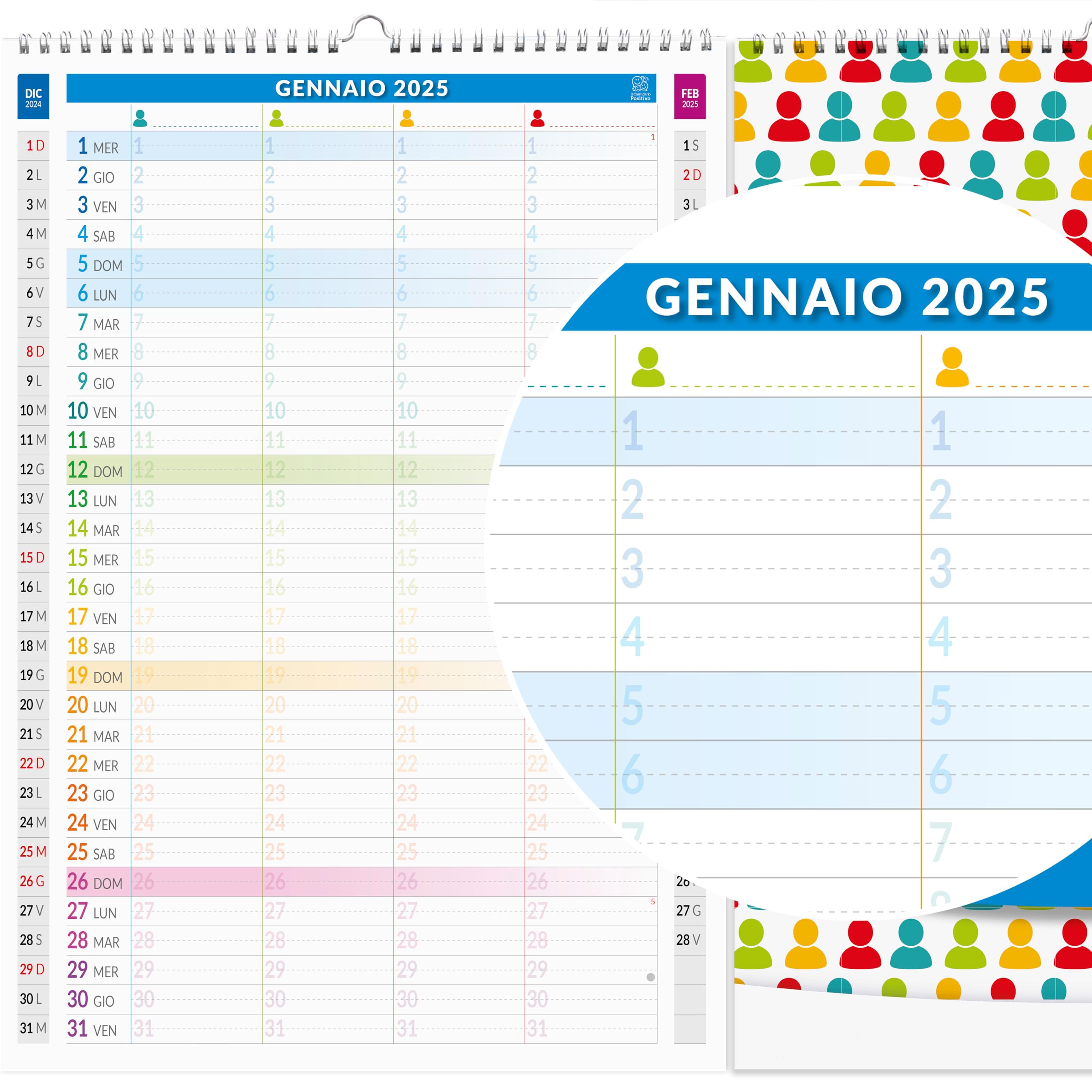Calendario Familiare 2025 - DIN A3 | Agenda Familiare 2025 - 5 Colonne