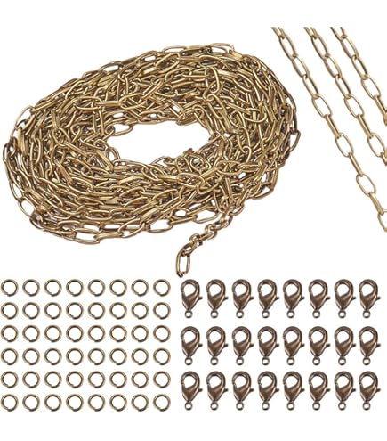 SUNNYCLUE 1 Rotolo Di Gioielli Rettangolari Che Fanno Catena Sfusa 5mm Antica Catena Cavo In Bronzo Con Fermagli 20 Pezzi Di Aragosta E Anelli Di Salto 50 Pezzi Per Fare Di Gioielli