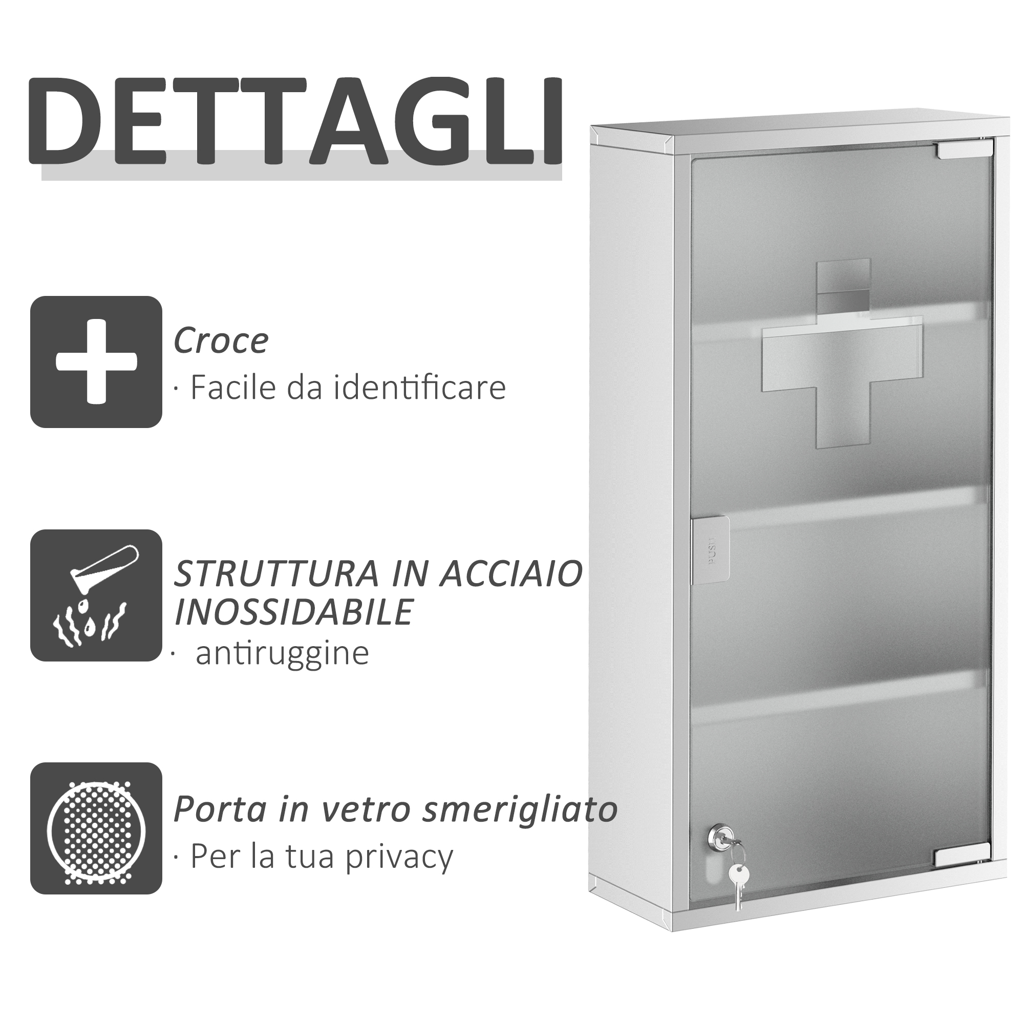 DecHome Armadietto Medicinali Cassetta Medica Farmaci Primo Soccorso 50x30x18 Cm - D03D5