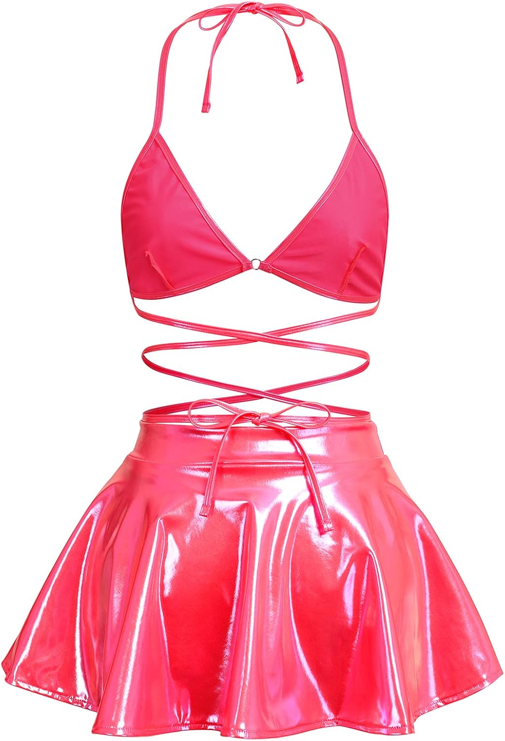 FYMNSI Reggiseno A Fascia Da Donna Et Mutandine Cinturino Top A Tubo Completo Bikini Sexy Body Metallizzato Lucido Effetto Bagnato Vestito Da Ballo