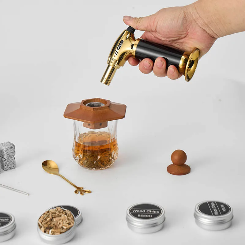 Cocktail Smoker Kit,Old Fashioned Chimney Drink Smoker With Oak,Cherry,Apple And