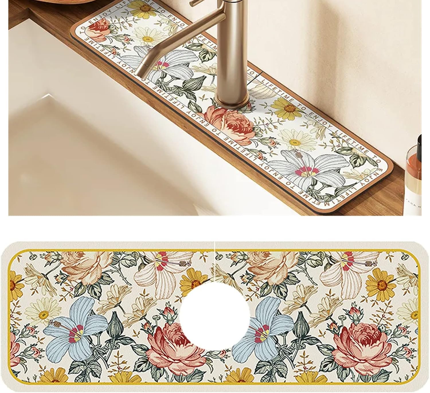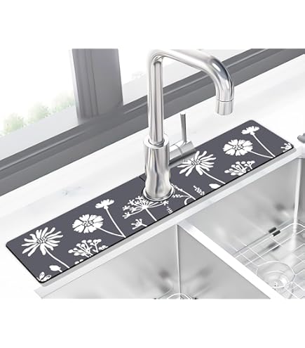 【Floral Sink Faucet Absorbent Mat】Rubber anti-slip sink faucet mat, splash guard for sink, the back of the draining mat has a rectangular textured finish that allows for a firmer grip on the countertop to avoid sliding. 【Easy To Clean, Easy To Install】Faucet draining mat after a period of light cleaning with a brush and detergent and rinsing with water it can be applied to tile walls and will fall off automatically when dry. Fantasy Style Faucet Draining Mat , Wasserhahn-Abtropfmatte im Fantasy-Stil , Absorbant Faucet Mat for Kitchen Sink, Floral Sink Faucet Mat , Diatom Mud Kitchen Faucet Mat Sink Splash Guard (23 【Sink Mat for Faucet】The countertop where you keep your faucet and dish soap is always wet & getting discolored?Every time you use the faucet, water collects on the countertop under the handle?Try this fantastically styled draining pad. Specifications: Name: Fantasy Style Faucet Draining Mat Material: Diatomaceous earth Weight: 110g Size: 14.9 x 5.5 inches Target Audience: UnisextPackage Include: 1pcs x Fantasy Style Faucet Draining Mat Just toss sink splash guard in your washer when it's time for a cleaning, and you'll be able to use your dish drying mat again and again! 【Machine Washable】Caring for your faucet mat couldn't be easier, as kitchen sink splash guard can be washed by machine. -------------------------------Welcome to our shop----------------------------- Fantasy Style Faucet Draining Mat,Self Absorbent Draining Mat for Kitchen Counter,Vintage Floral Plates Dish Drying Mat,Diatom Mud Faucet Non-slip Drain Pad Sink Mat,Faucet Mat for Kitchen SinkFeature: Easy to Install and Clean, Suitable for Most Homes. Sturdy and Flexible Draining Pad Keeps Countertops Dry. Raccogli Gocce Scolapiatti Fantasy Style Faucet Draining Mat, Wasserhahn-Abtropfmatte Im Fantasy Tappetino Scolapiatti Assorbente