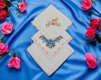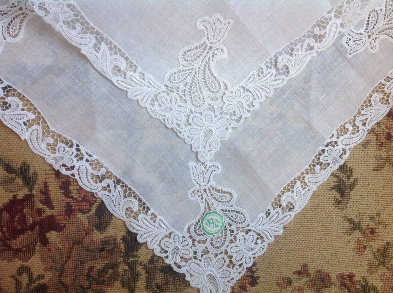 Collezione Di 3 Fazzoletti Di Pizzo Bianchi Antichi E Vintage