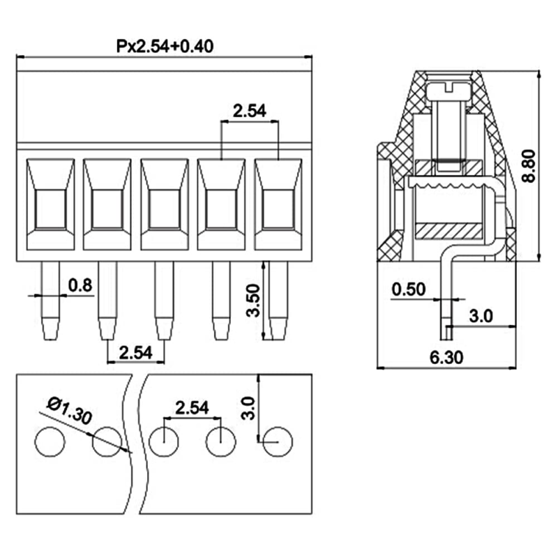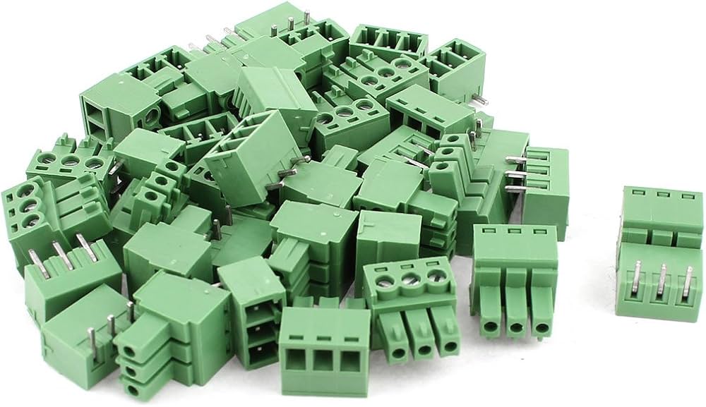 Morsettiera con connessione a vite Tipo verticale 3 pin Montaggio su PCB, con buona qualità e prezzo di fabbrica, ordine dal negozio online di fabbrica OEM originale in Cina Peso netto: 16g; della confezione: 20 Paio x Morsettiera PCB Valore nominale: AC 300V 8A; Poli: 3P; Distanza tra i perni: 3.81mm/0.15. 3. Connettori a morsetto a vite PCB maschio femmina passo 81mm 3 pin, 20 coppieSpecifiche:Nome del prodottoPCB Terminal BlockModello 3. 81-3PLMaterialePlasticaValore nominaleAC 300V 8APoli3PDistanza dei pin3. 81mm/0.15polliciLarghezza del foro del cavo 2.6mm/ 0.1polliciMaschio Blocco Dimensioni13 x 10 x 9mm/0.5pollici x 0.4pollici x 0.35". Larghezza del foro del cavo: 2,6mm/ 0,1; Dimensioni del blocco maschio: 13 x 10 x 9mm/0,5 x 0,4 x 0,35 (L*W*H) 10 Set Maschio E Femmina 3.81mm Passo PCB Pluggable Terminal Blocks Nome del prodotto: Morsettiera per PCB; Modello: 3.81-3PL; Materiale: Plastica