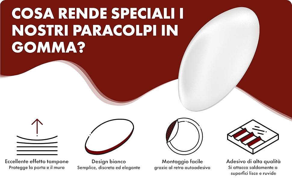 Fermaporte Per Porta Virea 10 X Fermaporta 40 X 8 Mm Nero - Paracolpi Autoadesivi Per Porte - Paracolpi Elastici Per Pareti - Per Proteggere Pareti E Mobili - Paracolpi Ammortizzatori Per Ante –– MANTIENE CIÒ CHE PROMETTE –– I paracolpi in gomma aderiscono in modo affidabile a tutte le superfici lisce come vetro, metallo, legno, piastrelle, ceramica, ecc. 10 mm | trasparente Paracolpi elastici, semisfera, autoadesivo –– VERSATILE NELL'USO –– Ottimi per essere utilizzati come sottofondo protettivo e ammortizzante in tutta la casa, ad esempio dietro armadi, porte, cassetti o come piedini in gomma per piani di lavoro in vetro. Può essere applicato in pochi secondi senza bisogno di strumenti aggiuntivi o di forare! –– DESIGN SEMPLICE –– Una protezione discreta e discreta per le tue superfici domestiche. –– FACILE DA INSTALLARE –– Basta rimuovere il paracolpi in gomma dalla pellicola protettiva e premerlo nella posizione desiderata. –– DELICATO SULLE SUPERFICI –– Eccellente effetto ammortizzante grazie al materiale elastico.