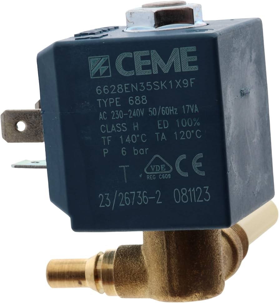 Rowenta Perfect Steam Pro Rowenta Tefal Elettrovalvola Bobina Ferro DG86 DG89 DG91 DG92 Ferro Da Stiro Rowenta Con Caldaia Ricambio nuovo originale Rowenta Tefal Spedizione con corriere espresso o possibilità di ritiro a mano a Palermo Elettro valvola solenoide bobina per ferro da stiro a vapore con caldaia Dati bobina Aimega Type: V600 220-240V~ 50/60Hz 18VA Class: H ED100% TF: 140°C TA: 120°C P 0.1-6.0 bar Diametro filettatura 9.8mm Raccordo a baionetta ATTENZIONE: Verificare che l'elettrovalvola in vostro possesso sia dello stesso tipo come in foto, ossia a 2 vie. Puoi trovare i dati del tuo prodotto nella targhetta identificativa, solitamente sotto l'elettrodomestico. Ricambio nuovo originale Rowenta Tefal . Elettro valvola solenoide bobina per ferro da stiro a vapore con caldaia. Dati bobina 1. Dati bobina 2 Se la forma dell'elettrovalvola in vostro possesso è differente, questo ricambio NON potrà essere usato nel vostro modello anche se inserito nella lista di compatibilità.