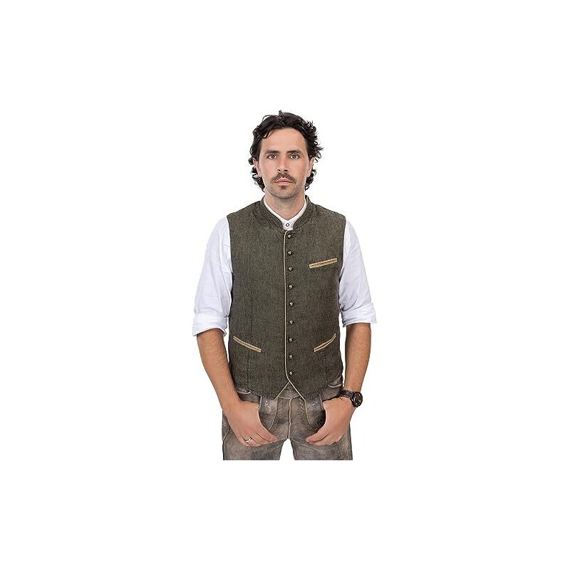 Design tradizionale e vestibilità: il gilet senza maniche per costume tradizionale bavarese dispone di un colletto alto, dotato di ricami classici e di una abbottonatura alta con bottoni in metallo eleganti e classici. I nostri clienti sono importanti per noi anche dopo l'acquisto Gilet Uomo Pelle Oktoberfest: La Tradizionale Festa Bavarese D'autunno - The Light Canvas Gilet Lino Uomo Acquista Schöneberger Costume tradizionale bavarese da uomo, colore verde oliva, gilet vintage per Oktoberfest, gilet in lino, pantaloni in pelle, verde oliva, Schöneberger Trachten Couture e articoli simili su . Le migliori offerte da 63,43 € - scopri ora Il gilet Lodenwest completa un elegante outfit bavarese. Il gilet Lodenwest completa il perfetto ed elegante outfit bavarese. La promessa di SCHÖNEBERGER TRACHEN: offriamo materiali di alta qualità e buona lavorazione in un design senza tempo Schöneberger a un buon rapporto qualità-prezzo. Gilet tradizionale da uomo – Tradizionale e moderno: il gilet elegante e classico Hubertus in verde oliva/grigio è realizzato in lino di alta qualità e lavorato in stile vintage. Gilet da uomo Hubertus è un vero tuttofare. La parte migliore: il gilet mantiene piacevolmente caldo. Grazie al materiale in lino, il gilet è particolarmente comodo da indossare e perfetto per lo stile di vita alpino. Materiale e qualità: il gilet in lino è particolarmente comodo da indossare e ideale per lo stile di vita alpino. Istruzioni di lavaggio : Lavare in lavatrice Il gilet da uomo Hubertus è un vero tuttofare: si adatta perfettamente ai classici pantaloni in pelle, ma fa anche una bella figura con jeans moderni o chino.