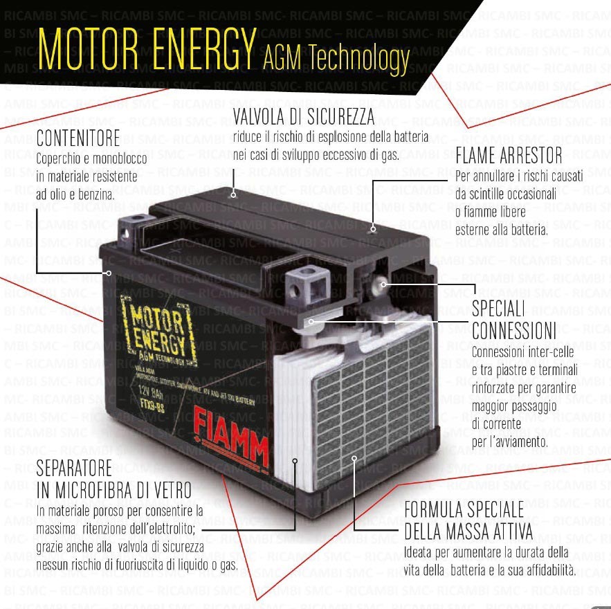 Batteria Fiamm FTX14-BS - Motor Energy AGM (12V, 12Ah, 190A