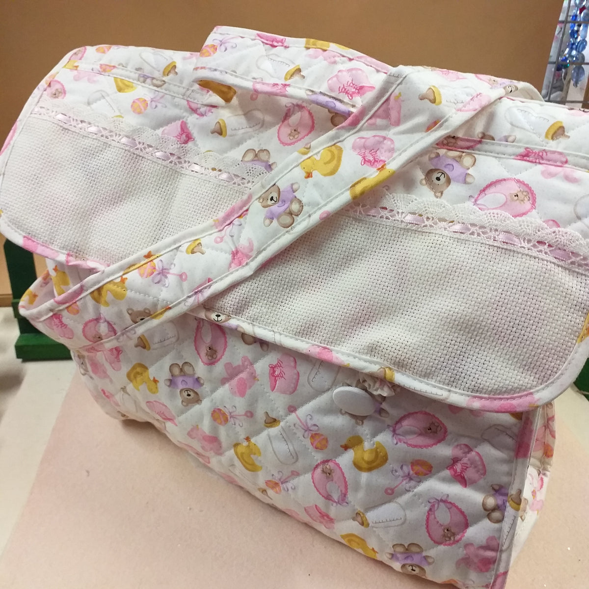 Filet - Borsa Fasciatoio Per Neonati, Borsa Per Il Cambio Pannolino, Realizzata In Cotone Trapuntato E Interno In Spugna, Con Tasca In Tela Aida Da Ricamare, 100% Made In Italy, Colore Cielo