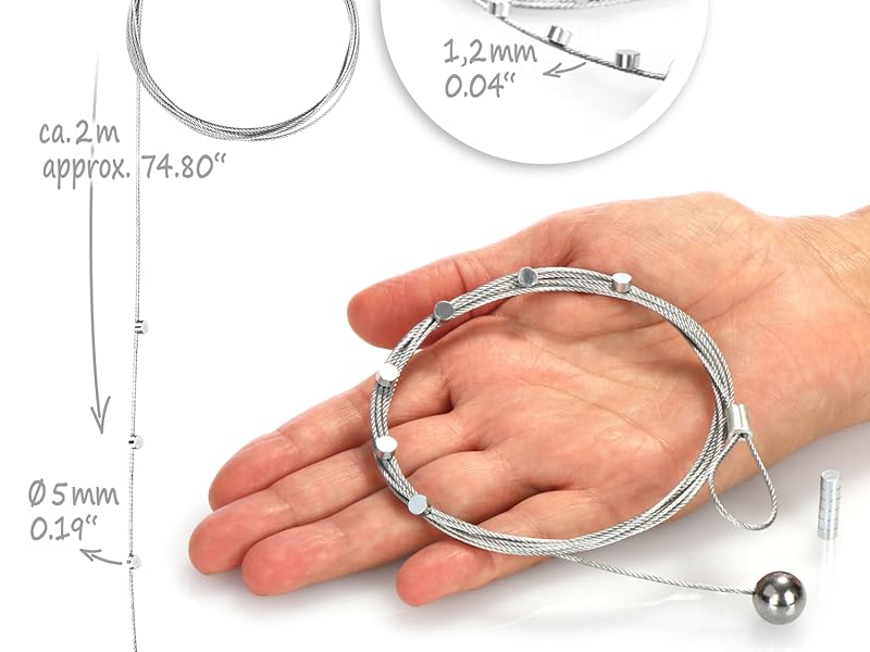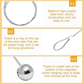 La fune metallica per foto di alta qualità è facile da montare, basta appenderla all'unghia sul muro per completarla e utilizzare un magnete per fissare la foto in base all'immagine. La fune metallica fotografica è stabile e facile da maneggiare, poiché nella parte inferiore è appesa un peso rotondo e quindi rimane sempre dritta nonostante l'avvolgimento circolare. WTUGJEP 3 Pezzi Filo per Appendere Foto con 36 Magneti Cavo per Appendere Foto Corda in Metallo a Sospensione per Foto da Parete Corda Acciaio Fotografica Magneti - Filo : 2M*1.5MM Filo Per Appendere Foto WTUGJEP 3 Pezzi Con 36 Magneti Cavo Per Quadro Per Calamite Da Parete ✨ 【Corda fotografica per appendere foto】: non solo puoi appendere le tue foto più belle, ma puoi anche allegare cartoline, opuscoli o note alla linea fotografica e scambiarle a piacere. Puoi facilmente utilizzare la fune metallica per foto in camera da letto, soggiorno e ufficio per creare un'atmosfera calda. ✨ 【Lunghezza del filo fotografico regolabile】: la fune metallica può essere regolata alla lunghezza necessaria dal gancio all'estremità del gancio, molto comodo. Fantastiche foto ricordo, foto delle vacanze, cartoline, istantanee o appunti di ogni tipo possono diventare rapidamente un'attrazione sulla robusta ma leggera corda magnetica. ✨ 【Ottimo regalo fotografico】: 3 funi metalliche, 36 magneti, dimensioni 200 cm x 1,5 mm, 3 set possono soddisfare le tue diverse esigenze.