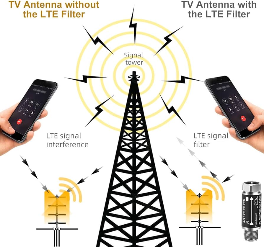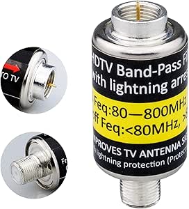 Filtro Antenna Freeview Hd SSL 5G LTE Aerial Filter For FREEVIEW HD TV – In-line Filter Filtro Ssl 5g Lte Migliora i segnali TV: i filtri 5G LTE selezionano solo i segnali Freeview designati da bande di frequenza specifiche. I filtri LTE 4G e 5G funzionano come barriere contro le frequenze indesiderate generate dalle torri cellulari, che possono influenzare i segnali TV in digitale terrestre. Questi filtri LTE bloccano selettivamente le frequenze 4G o 5G mantenendo inaltera Aggiungere il cavo prima di collegarlo al televisore. Affidabilità – Questo filtro è molto affidabile e può essere utilizzato per un lungo periodo di tempo senza danni. Riduce le interferenze: migliora i segnali dell'aria filtrando le interferenze del segnale LTE mobile (5G) che possono causare interruzioni intermittenti del segnale TV, compresi i segnali deboli. Filtra anche i segnali indesiderati di radiofrequenza (RF) per impedire ai sistemi di antenna HDTV di interruzione del segnale TV intermittente, migliorando così i segnali d'aria. Il filtro rimuove il rumore per un'immagine chiara, priva di interferenze.