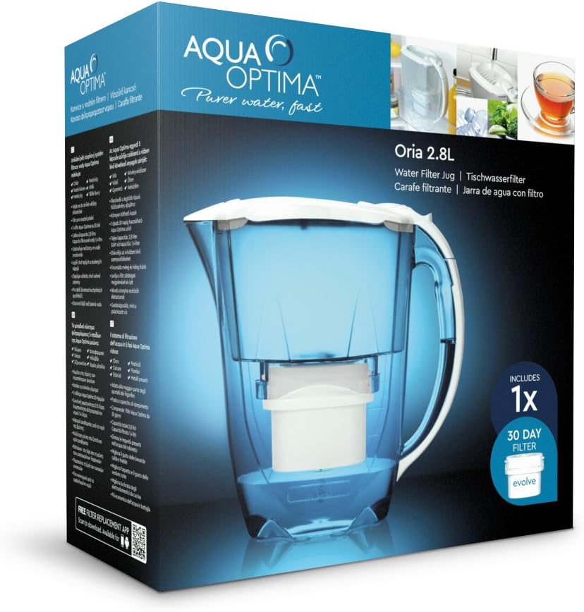 Aqua Optima Oria Water Filter Jug & 3 X 30 Day Evolve+ Filter Cartridge