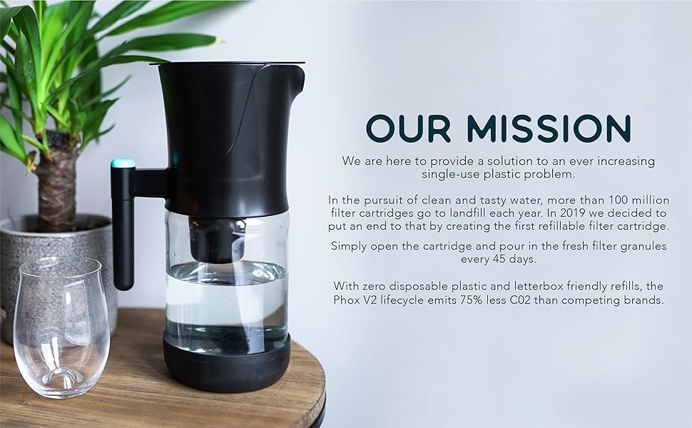 Quindi ci siamo liberati degli indicatori fisici e abbiamo creato una nuova app che ti invia notifiche quando è il momento di cambiare il filtro. Sostenibile: milioni di cartucce filtranti vanno in discarica ogni anno. Pacchetto pulito Perfetto per acqua duraIdeale per tè e caffèOttimo gustoRimuove i cattivi Pacchetto alcalino Aggiunto magnesio per una migliore idratazioneAiuta il reflusso acido pH filtrato di 8-9Aids recupero sportivoOttimo gusto L'app Phox ti aiuta a tenere traccia di quando sostituire il filtro. Filtro senza colpa Cartuccia ricaricabile Ci siamo resi conto di quanto fosse indietro dover buttare via le cartucce del filtro dell'acqua ogni 30 giorni. Phox Italia Phox Wave Carafe Filtrante 2,8 L Et Cartouche Rechargeable Phox Ricarica Ricariche compatibili con cassetta delle lettere I filtri tradizionali non si adattano alla cassetta delle lettere, il che porta a consegne mancate e secondi tentativi che aumentano le emissioni di carbonio. Abbiamo inventato la prima cartuccia ricaricabile, acqua dal sapore eccezionale con zero cartucce di plastica monouso monouso è fuori, ricaricabile è in. Prodotto nel Regno Unito Per ridurre la nostra impronta di carbonio, ci siamo concentrati sulla ricerca di aziende britanniche per fornire quante più materie prime possibile. igliore cartuccia caraffa filtrante recensioni copatibile brita cartucce caraffe Aiuta anche a migliorare il gusto. Filtrazione multistadio con aggiunta di minerali utilizzando una combinazione di ingredienti naturali che forniscono acqua alcalina pulita con un pH medio di 8,0-9,5. Trovato in confezione alcalina e pulita Il carbone attivo derivato dai gusci di cocco è ottimo per assorbire cattivi come mercurio, metalli pesanti e pesticidi. La produzione, l'imballaggio e il design di Wave sono tutti fatti entro un raggio di 30 miglia dal nostro ufficio a Glasgow. Alcalina: questo pacchetto crea acqua alcalina che sfrutta il potere antiossidante. Con il nostro filtro ricaricabile e coperchio a tenuta stagna. Finitura in bianco opaco e blu Phox Prodotto in Scozia. Ricariche: le nostre confezioni di ricarica contengono due bustine da 45 giorni. Scegli il tuo filtro Scegli quale pacchetto di ricarica si adatta meglio alle tue esigenze. Filtro Timer App Meno sprechi è la nostra missione.