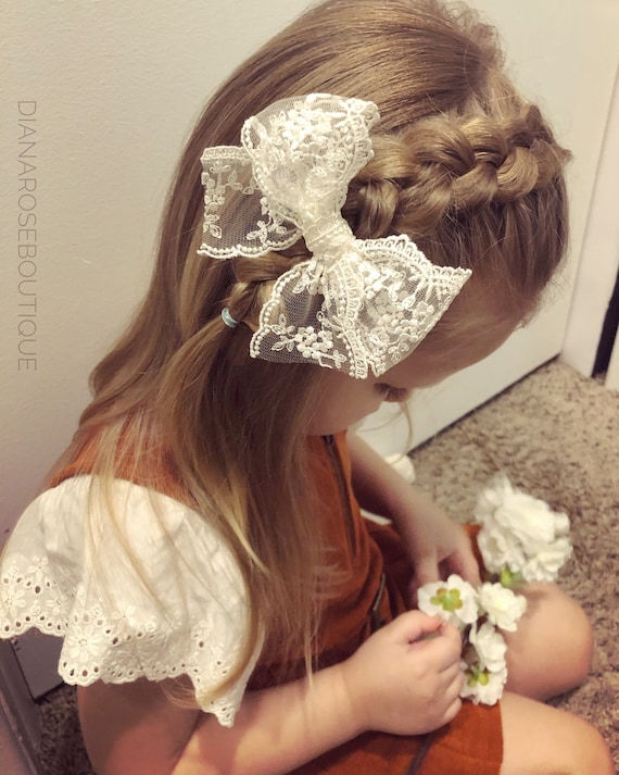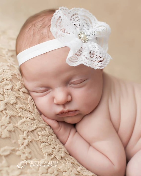 Set Di Fascia In Pizzo Con Fiori Di Punta-Swarovski-Fascia Per Bambini-Fascia Da Ragazza-Fascia Per Fiori-Fiore Toe Blooms-Fascia A Fiore Bianco-Pizzo Morbido - Italia