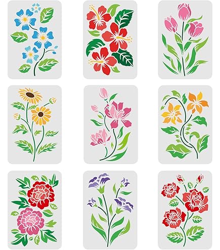 QBIX Stencil Per Fiori - Fiori E Foglie - Formato A5 - Stencil