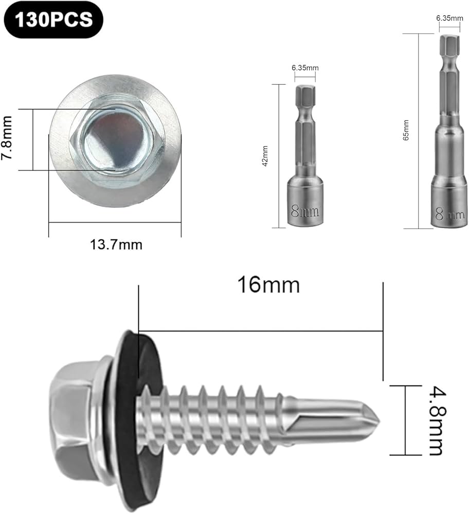 La testa piatta è allo stesso livello del piano di fissaggio, il che è più bello. Caratteristiche: Materiale: acciaio inossidabile Colore: argento Quantità: 440 pz La confezione include: 70 pz - M4,2x13mm 60 pz - M4,2x16mm 50 pz - M4,2x19mm 35 pz - M4,2x25mm 30 pz - M4.2x32mm 20 pz - M4.8x38mm 20 pz - M4.8x32mm 30 pz - M4.8x25mm 35 pz - M4.8x19mm 40 pz - M4.8x16mm 50 pz - M4.8x13mm Garanzia del servizio clienti: Se hai domande, contattaci in tempo e risponderemo alle tue domande il prima possibile. Materiali squisiti: le nostre viti autofilettanti in metallo sono realizzate in acciaio inossidabile di alta qualità, con elevata resistenza e durezza, resistenza alla corrosione e alla ruggine, superficie liscia senza sbavature, non facile da rompere o d Viti Per Legno Autoperforanti 270 Viti Autofilettanti, M4.2, In Acciaio Zincato A Testa Piatta, Set Di Fissaggio Di Classificazione, Utilizzate Per Sottili Metallo-legno, Plastica Ecc. (13/16/19/25/32/38/50 Mm Viti M4 Viti a testa svasata a croce: le viti autoperforanti sono progettate con la punta della punta del trapano e filettature taglienti affilate per la maschiatura dei fori durante l'installazione e non è necessario alcun foro pilota per il taglio e il serraggio. di strutture in acciaio, ed è anche utilizzato nella produzione e manutenzione di produzione, costruzione, ingegneria, contenitori e finestre in acciaio. Design delle viti autoperforanti: le viti autoperforanti per metallo adottano un design a testa piatta a croce/vite svasata, con filettature chiare e pulite, passo uniforme e forza uniforme e non scivolano durante l'uso. Può essere forato, maschiato e bloccato direttamente sui materiali da costruzione per migliorare l'efficienza del lavoro. per strutture in acciaio e utilizzate anche nella produzione e manutenzione di container e finestre in acciaio.