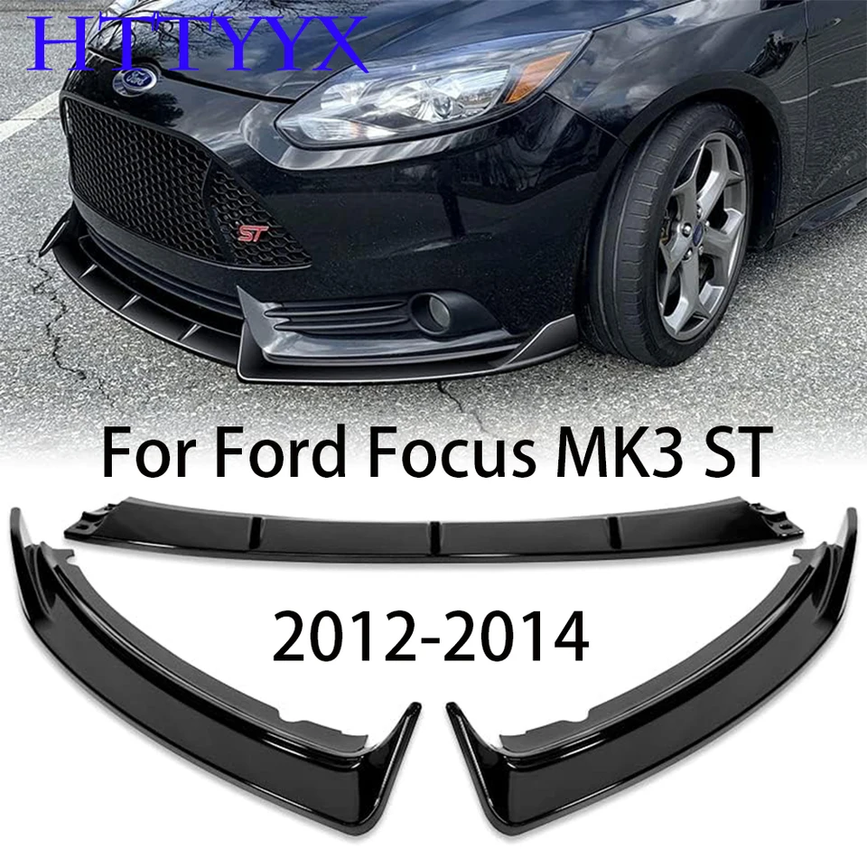 Fit For Ford Focus MK3 ST 2012 2013 2014 3Pcs Gloss Black Car Front Bumper Splitter Lip Diffuser Body Kit Spoiler Guard