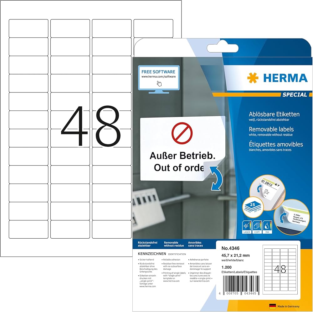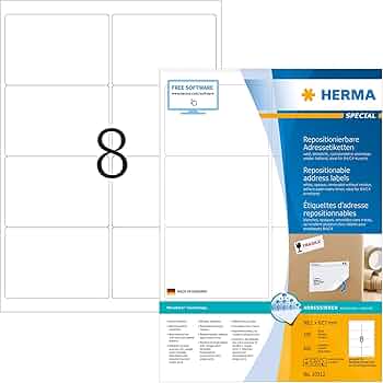 Ideali per etichettature in magazzino, produzione e officina, come etichette di codici a barre, segnalazioni di avviso, per et ichettare proprietà e inventario Per scritte soggette a forti sollecitazioni in ambiente interno ed esterno, estremamente resistenti, resistenti all invecchia mento/alle temperature/ai raggi UV Etichette Adesive Impermeabile Etichette Adesive Su Fogli Fogli A4 Di Etichette Adesive Bianche, Crea I Tuoi Adesivi Personalizzati Per Qualsiasi Superficie, Carta A4 Adesiva Sicura, Etichetta Adesiva Per Stampare - Ofituria (72 Per Foglio, 25 Etichette Adesive Grandi Bianche Nessuna installazione di software Assistente di grafica Etichette per stampanti a getto d'inchiostro 1100 etichette / 25 foglio / 44 etichette per foglio Etichette per indirizzi Etichette per CD Etichette per bottiglie Etichette per nomitessuto Etichette per raccoglitori Etichette con prezzi e anelli Etichette per QR-Code Cartelli autoadesivi Etichette di sicurezza Etichette per surgelati Etichette per targhette Etichetta per busta Modelli di design subito utilizzabili Aiuto videos Etichette colorate e neon Adatte per stampanti laser e fotocopiatrici, risultati di stampa ottimali in bianco e nero e a colori: non adatte per stampanti Inkjet