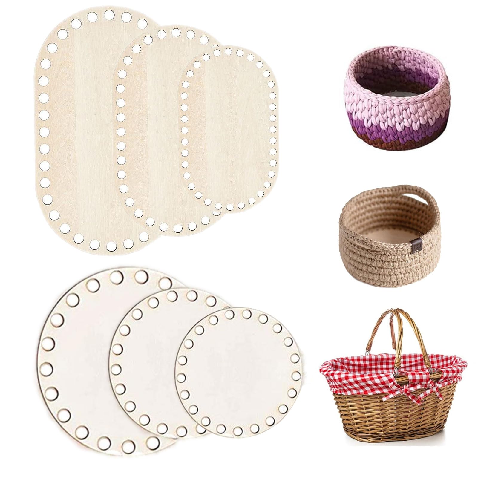 6 Pezzi Fondo Cesto In Legno Naturale, 15cm/20cm Base Cesto
