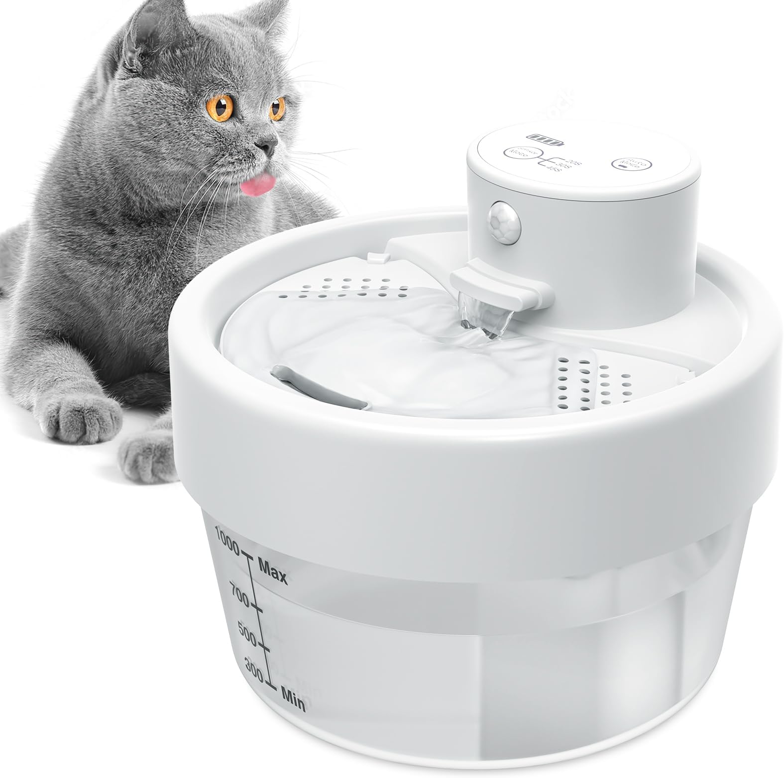 Con la batteria integrata 4200mAh (fino a 60 giorni di autonomia) e il sensore di movimento intelligente, il tuo gatto può bere liberamente in qualsiasi ambiente - salotto, camera da letto o persino sul terrazzo. Fontanella Per Gatti Senza Fili 2,5L Fontana Per Gatti Super Silenziosa 4000 MAh Fontanella Gatti Batteria Fontanella Gatto Con Sensore Di Movimento Dispenser Acqua Gatti Ricaricabile -senza BPA, Nero Filtri Fontanella Per Gatti Con una batterie ricaricabile intégrée 4200mAh (60 giorni di autonomia), permettendoti di collocarla ovunque in casa. - Stimola l'istinto di bere con acqua ossigenata e fresca! Marca: PawPoll Caratteristiche principali [Capacità 3,2L + Batteria da 4200mAh]La fontana per gatti da 3,2 litri può soddisfare le esigenze di bere di un gatto per 10 giorni. Con una batterie ricaricabile intégrée 4200mAh (60 giorni di autonomia), permett 【Ultra Silenziosa per un Sonno Sereno】La fontanella gatto PawPoll monta una pompa da 1.5W a basso consumo, ecologica e silenziosa (≤25 dB) - perfetta per non disturbare il sonno tuo e del tuo gatto. - ideale per la salute del tuo gatto. 1 60 giorni di standby 2 Capacità di 3,2L 3 Ultra silenziosa 4 Facile da pulire 5 Ogni sorso purificato 【Facile da Pulire e Mantenere】Tutti i pezzi della fontanella per gatti PawPoll si smontano facilmente per una pulizia semplice. Il materiale in acciaio inossidabile 304 fornisce un ambiente per bere più sicuro e igienico per i gatti. Come pulire la pompa dell'acqua? Per una migliore manutenzione, pulire la pompa ogni 1-2 settimane. PawPoll Fontanella per Gatti senza Fili 3,2L Video del venditore Come pulire la pompa dell'acqua? Video del venditore - Ideale per chi cerca praticità e mobilità. 【Filtrazione quadrupla per un'acqua sana】Filtra peli e impurità attraverso 4 strati (spugna, carbone attivo, resina ionica, tessuto non tessuto) e purifica l'acqua. Si consiglia di cambiare il filtro e pulire la pompa e la fontana ogni due settimane. livello dell'acqua a LED trasparente. Allarme batteria scarica.