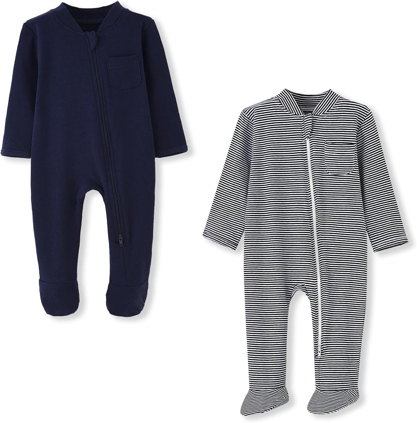 BINIDUCKLING Baby Boys Girls Double Zip Up Sleepsuit - Two-Way Zipper, Baby Footed Pajamas with Mitten Cuffs - Cotton Long Sleeve Onesie for Baby Grows Newborn-12 Month, Pack of 2 Adatto per dormire e indossare tutti i giorni Perfetto per 6 mesi di baby shower regalo, pigiama per bambini. Per 100 Notti CONYUMN Baby Footed Pajamas With Mitten Cuffs Baby Footed Non-Slip Crema Notte Polsino reversibile integrato: 3-12 mesi tutti hanno polsini arrotolabili per mantenere le mani del bambino calde o prevenire che il bambino si graffi Materiale: la tuta da notte per bambini di 6 mesi è realizzata in 100% cotone, traspirante e confortevole per la pelle sensibile del bambino