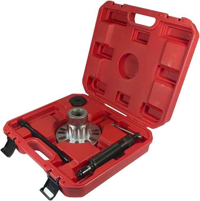 Il set è adatto per mozzi a 4 o 5 fori con un foro di 96 – 125 mm. Utensili professionali: questo estrattore per cuscinetti ruota è stato sviluppato appositamente per l'espressione di alberi di trasmissione dai mozzi delle ruote. Ampia compatibilità: questo set di estrattori per mozzi ruota è adatto per una vasta gamma di veicoli, tra cui auto, camion e SUV. [Alta efficienza]: dotato di un cilindro idraulico da 10 tonnellate, lo strumento offre una potenza di smontaggio impression Estrattore Silent Block Auto Set Estrattore Idraulico For Ingranaggi 10T Kit Estrattore For Cuscinetti Ruota 2/3 Ganasce Tirando Separatore For Mozzi Ruota Rotori Assi Auto Pulegge Freno Con Alta Efficienza Estrattore Ruota Idraulica 10 Tonnellate 【Potente】 Il mandrino dell'estrattore per mozzi ruota può essere azionato a mano o con un cricchetto. Il mandrino idraulico e il funzionamento semplice rendono lo smontaggio dell'albero di trasmissione un gioco da ragazzi. È particolarmente adatto per alberi di trasmissione incollati e arrugginiti. Facile da usare: semplificate il lavoro durante la sostituzione degli alberi di trasmissione con questo pratico set di attrezzi per l'estrattore degli alberi di trasmissione. Durevole: la lavorazione di alta qualità e la struttura robusta garantiscono una lunga durata e affidabilità di questo strumento per cuscinetti ruota.
