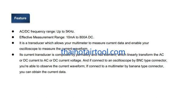 Hantek AC/DC Current Clamp For Oscilloscope 5KHz Bandwidth 1mV/1A 800A