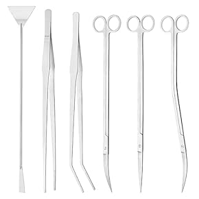 Forbici Curve: La Forma Curva Facilita Il Taglio Di Piante Ed Erbe A Crescita Bassa In Punti Difficili Da Raggiungere Nell'acquario. Acciaio Di Alta Qualità: Le Forbici Sono Realizzate In Acciaio Inossidabile Di Alta Qualità Per Evitare La Corrosione E S Le forbici sono flessibili e possono essere utilizzate in qualsiasi posizione dell'acquario. Le forbici per acquario si adattano alla forma della mano per un'esperienza di taglio più confortevole. [Materiale di Realizzato con materiali in acciaio inossidabile di resistenti alla corrosione, per garantire che gli strumenti non si arrugginiscano facilmente e durino più a lungo. L'alta precisione consente tagli precisi e puliti senza danneggiare le piante. Forbici Per Acquario Forbici Curve A 25 Centimetri Per Gli Acquari Piantati | CO2 Supermarket Pianta Acquatica [Facile da usare e ad alta precisione] Facile da usare e con la possibilità di tagliare con precisione in base alle proprie esigenze.
