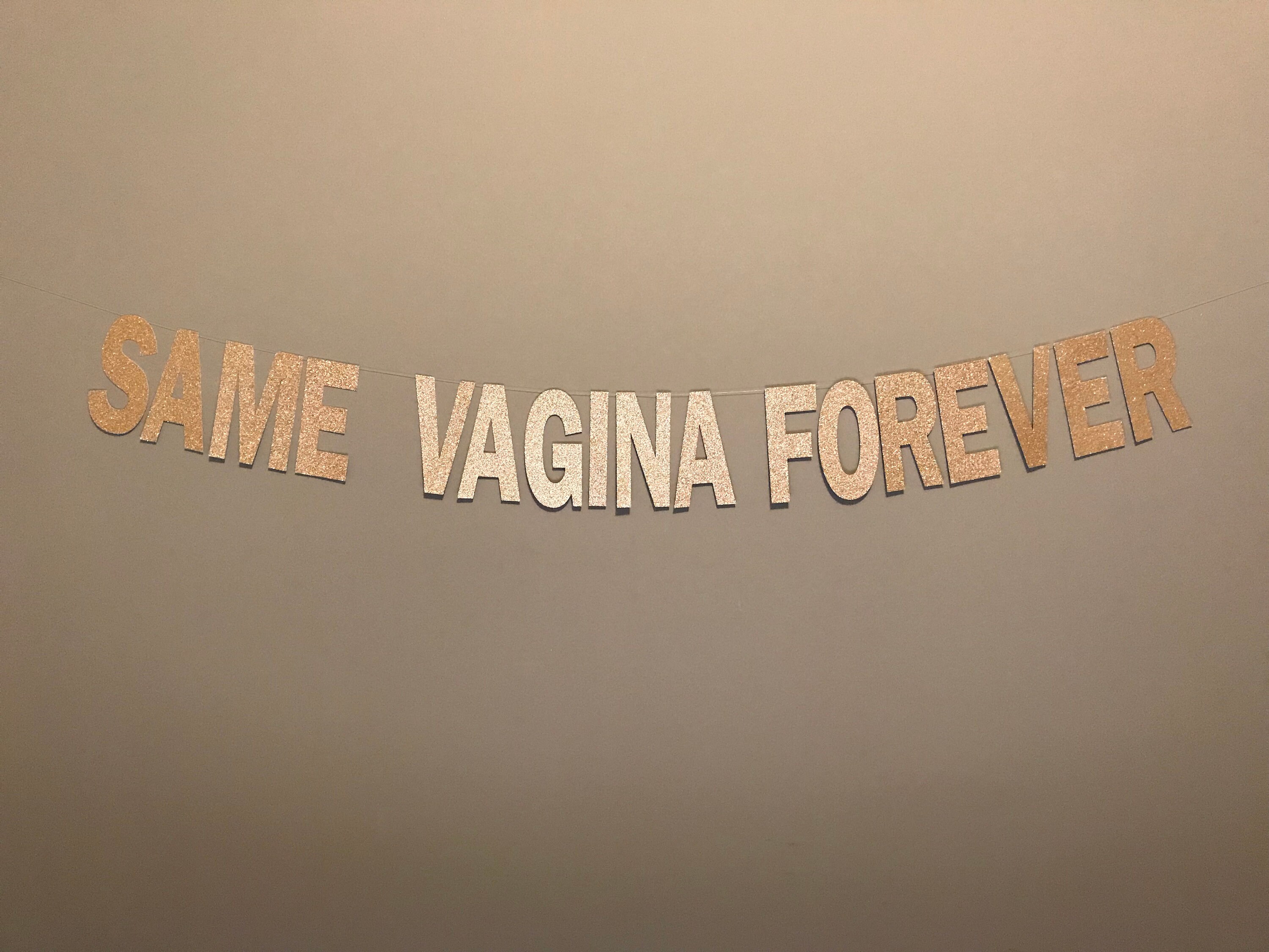 Faixa Same Vagina Forever Glitter Dourada - Hora Da Despedida | Todos Hai bisogno di un po’ di divertimento per mettere in imbarazzo lo scapolo/nubile? Il nostro striscione glitterato SAME VAGINA FOREVER è il tocco perfetto di immaturità per far rabbrividire la sua sposa GARANZIA: L’acquisto dei nostri addobbi è coperto da una garanzia di rimborso al 100%. Questo striscione con glitter oro è la decorazione perfetta per aggiungere un tocco di classe e accogliere i tuoi ospiti al meglio. DIMENSIONI – Lo striscione è piccolo e misura circa 1,1 m. Questo striscione per il 50° compleanno è robusto ma non pesant QUALITA’: Le lettere che costituiscono la scritta sono di alta qualità e attireranno di sicuro l’attenzione dei tuoi amici grazie al loro bagliore sotto le luci.