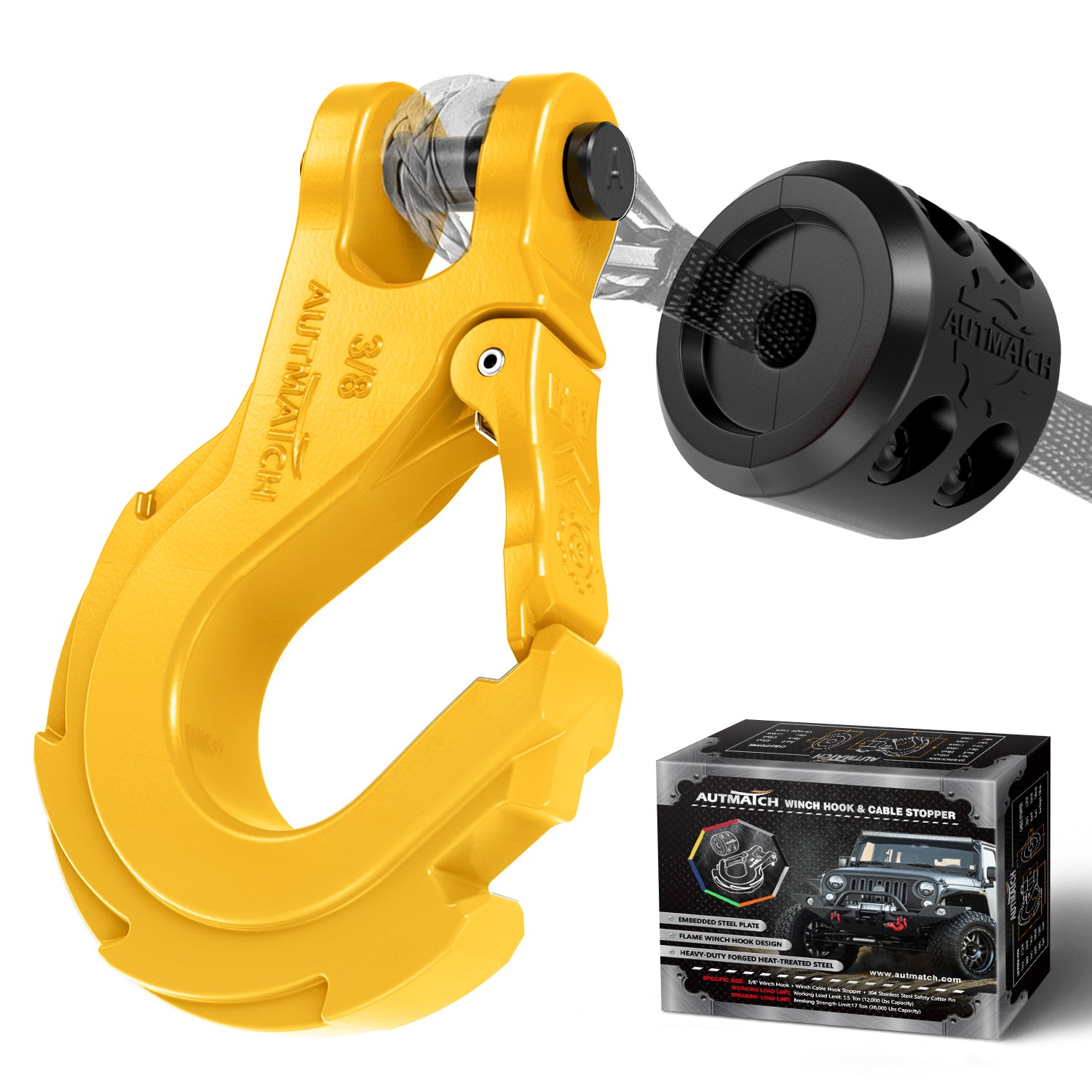 The Winch Hook can eliminate the collision effectively between the trailer hook and the winch to protect the winch motor Sicuro ed efficiente, il design esclusivo dispone di un fermo di sicurezza caricato a molla per garantire un fissaggio sicuro, con un perno Clevis di 1/2 pollici di diametro tenuto con un perno diviso. Ideale per l'uso con la maggior parte dei ATV, UTV, fuoristrada. Climbing Car Winch Hook 3/8, Heavy Duty Acciaio Forgiato Grado 70, Barra Di Sicurezza Winch Hook Clevis Kit Etilometro Il gancio forgiato pesante è stato zincato e la superficie verniciata. Super qualità: il gancio per verricello è stato realizzato in acciaio pesante Grand 70 forgiato trattato termicamente e realizzato in acciaio pressofuso legato del blocco di sicurezza, che aumenta la resistenza alla rottura fino a 35000 libbre, per mantenerlo più sicurezza e stabilità
