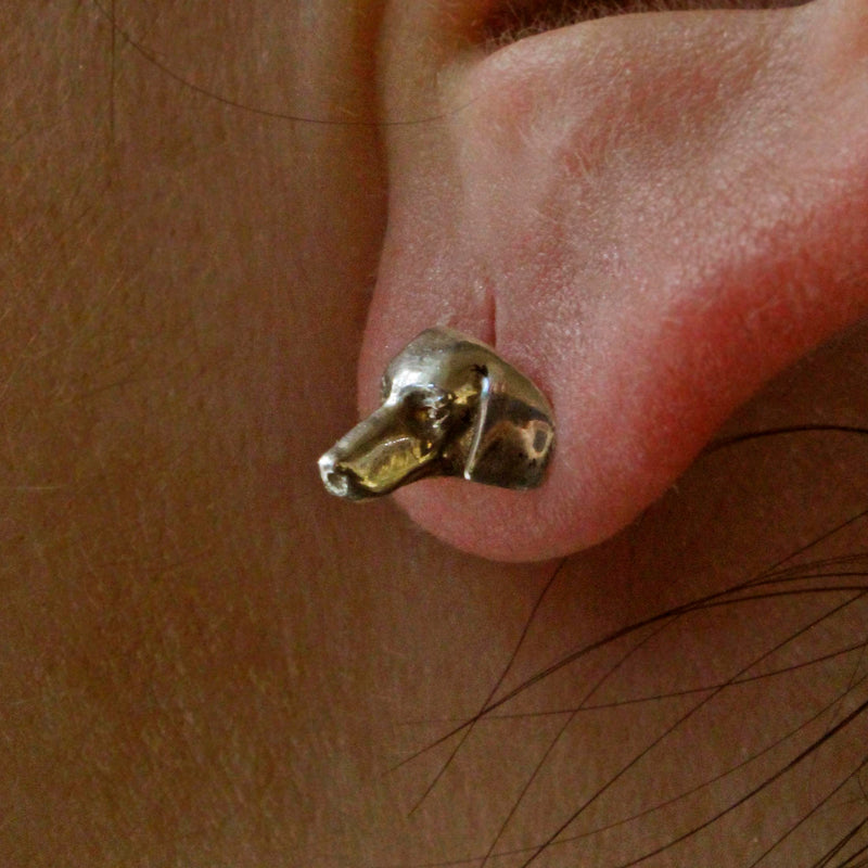 Orecchini Vintage A Forma Di Cane Schnauzer In Oro Giallo 18K Con Topa