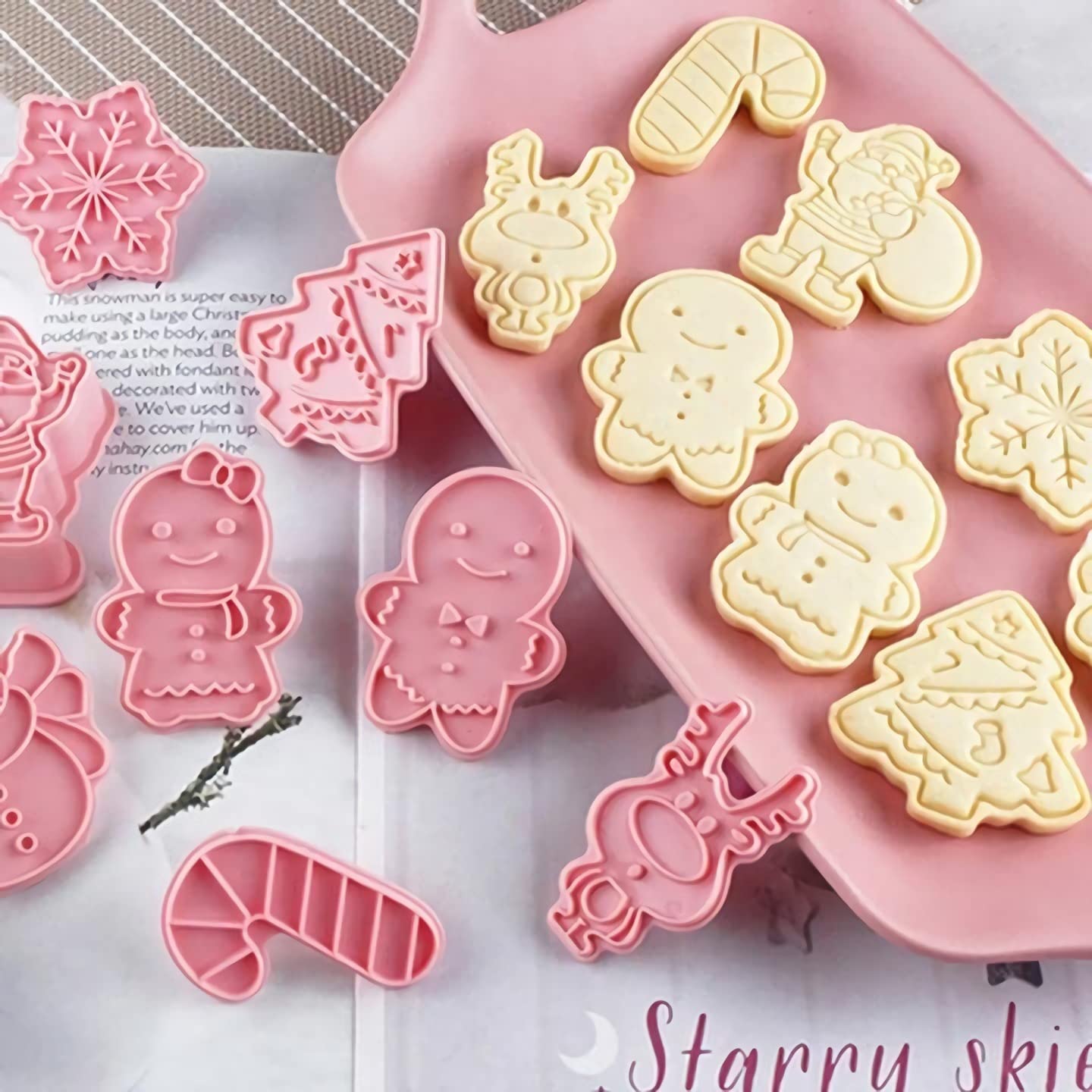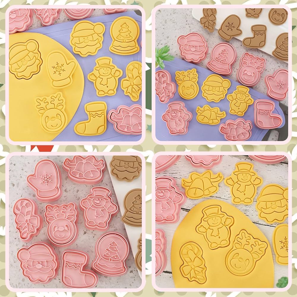 8 Pezzi Formine Per Biscotti Natale, 3D Pressable Formine Per Biscotti, Faburo Formine Biscotti, Per Biscotti Bakeware Fondente Torta Paletta
