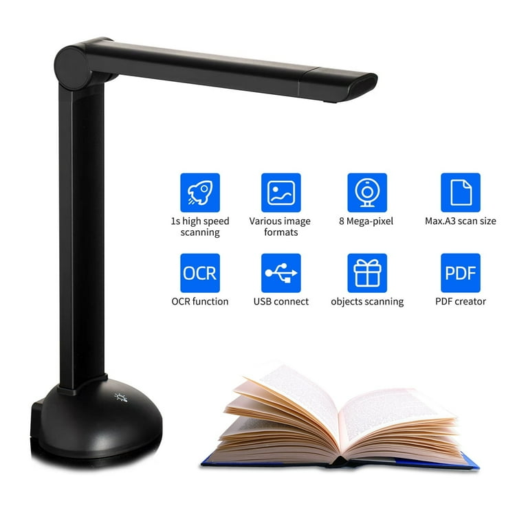 Lettore Ebook Fotocamera Per Documenti USB, Fotocamera Per Documenti E Scanner Per Libri Da 800 MP HD A4 Con Messa A Fuoco Automatica, Scanner Per Fotocamera Portatile Pieghevole Per File Note, Per Carte D'identità Lettore Carta Identita Elettronica CORREZIONE AUTOMATICA: questo scanner di documenti si calibra automaticamente con clic ed è facile da usare. Compra Scanner per Documenti USB, Scanner per Fotocamera per Documenti A4 con Messa a Fuoco Automatica Scanner per Libri HD da 8 MP con Inclinazione Automatica OCR, Pieghevole e Portatile, per la Scansione D. SPEDIZIONE GRATUITA su ordini idonei ECCELLENTE SENSORE CMOS: eccellente sensore CMOS acquisisce immagini in tempo reale in modo più chiaro. Supporta il riconoscimento multilingue, di segni e numeri e può essere esportato in file modificabili. È pieghevole e portatile, basta collegare lo scanner al computer con cavo USB e installare il relativo software per far funzionare lo scanner. POTENTE RICONOSCIMENTO DEL TESTO OCR: utilizzando la potente tecnologia OCR, l'immagine del documento catturata viene convertita direttamente in testo e il tasso di riconoscimento supera il 98%. Scansione automatica in batch, basta girare manualmente le pagine, scansionare continuamente in immagini.
