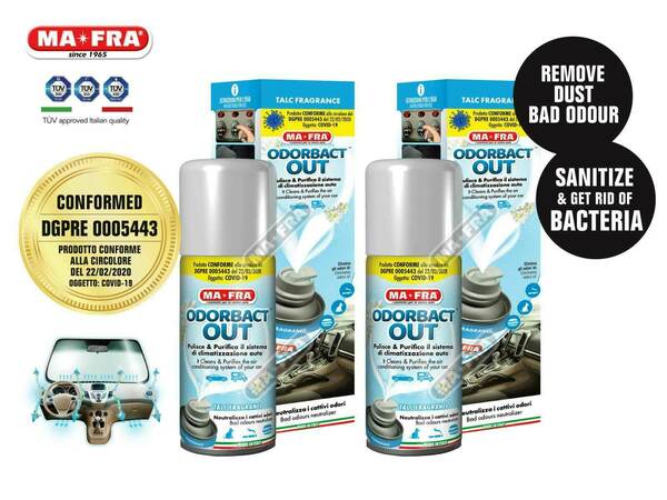 Finalmente un’aria sana, pulita e purificata per difendere la propria salute. PRATICO: operando tramite il sistema di climatizzazione dell’auto, rimuove a fondo tuti i cattivi odori che si accumulano nell’abitacolo, pulendo e purificando il sistema di climatizzazione dell’auto in meno di 10 minuti Odorbact Out Lemon Fragrance identifica i cattivi odori ovunque essi siano e li neutralizza definitivamente. Odorbact Out Lemon Fragrance di Mafra è il prodotto realizzato per pulire e purificare il sistema di climatizzazione dell'auto. Odorbact Out Lemon Fragrance elimina I cattivi odori all'interno dell'abitacolo, come puzza di fumo di sigarette, cibo e sopra Odorbact Out Lemon Fragrance ha una nota olfattiva composta da: - note di testa di Verbena, Fior di Lime e Note Verdi - note di cuore di The Verde Matcha, Mentuccia selvatica, Hibiscus e Mughetto - note di fondo di Legno di Cedro, Legno di Palissandro e Muschio Bianco Odorbact Out Lemon Fragrance è duraturo nel tempo ed è semplice e veloce da utilizzare. Odorbact Out Lemon Fragrance elimina I cattivi odori all’interno dell’abitacolo, come puzza di fumo di sigarette, cibo e soprattutto non ci sarà più della fastidiosa puzza dovuta alle impurità e muffe che si formano nel condotto di areazione del sistema di climatizzazione dell’auto. Nero Gomme Auto Mafra, Odorbact Out Lemon Fragrance, Spray Purificante Per Clima Profumatore Auto PURIFICA: Odorbact Out Lemon Fragrance pulisce e purifica il sistema di climatizzazione auto, elimina i cattivi odori ) - mettere in moto il veicolo e accendere il climatizzatore - assicurarsi che tutti i finestrini sia ben chiusi e le bocchette d’areazione aperte - inserire il ricircolo dell’aria e posizionare al massimo la ventilazione - posizionare la bomboletta spray in verticale sul tappetini del lato del passeggero, prestando attenzione affinché il getto vaporizzato non colpisca direttamente il cruscotto - premere a fondo la valvola della bomboletta fino al completo bloccaggio così da consentire lo svuotamento totale del prodotto - con il motore acceso, uscire dall’abitacolo e chiudere la portiera Attendere lo svuotamento completo della bomboletta e lasciar agire il prodotto per 10 minuti. Trattare il sistema di climatizzazione auto con Odorbact Out Lemon Fragrance, garantisce una pulizia a lunga durata dell’abitacolo, così da avere sempre la certezza di vivere in un ambiente purificato! Il prodotto agisce con la stessa intensità sia se si utilizza aria calda sia quella fredda. Infine aprire le portiere e lasciar areare l’abitacolo prima dell’utilizzo del veicolo.