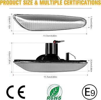 POPMOTORZ LED Dinamiche Indicatori di Direzione, 2 Pezzi LED Frecce Laterali con Canbus 4014 SMD per BMW 1 Series E81 E82 E87 E88 3 Series E36 E46 E90 E91 E92 E93 5 Series E60 E61 X1 E84 X3 E83 X5 E53 Vetro fumé, design raffinato, aspetto unico, anche un buon oggetto decorativo per la tua auto. più e gioca. 🚘【Installazione semplice】 Questo indicatore di direzione utilizza luci di segnalazione laterali a LED con prese T10, con plug and play (senza perforazione). Bmw E92 Bmw Serie 1 POPMOTORZ LED Dinamiche Indicatori Di Direzione, 2 Pezzi LED Frecce Laterali Con Canbus 4014 SMD Per BMW 1 Series E81 E82 E87 E88 3 Series E36 E46 E90 E91 E92 E93 5 Ford Focus Bmw X3 E83 Materiale impermeabile adottato, applicabile a varie intemperie. 🚗【Compatibile con BMW】LED Indicatori di Direzione compatibile con BMW 1 Series E81 E82 E87 E88, 3 Series E46 Limousine only Facelift 2001.09-2005.04, 3 Series E46 Touring only Facelift 2001.09- 2005.02, 3 Series E36 Limo only Facelift 1996.10, 3 Series E36 Cabriolet only Facelift B 1996.10, 3 Series E36 Compact only Facelift 1996.10, 3 Series E36 Coupe 0nly Facelift ab 1996.10, 3 Series E36 Touring only Facelift 1996.10. 🚗【Compatibile con BMW】LED Luci Laterali compatibile con BMW 3 Series E90 Limousine, 3 Series E90 Touring, 3 Series E91 Limousine, 3 Series E91 Touring, 3 Series E92 Coupe, 3 Series E92 Cabriolet, 3 Series E93 Coupe, 3 Series E93 Cabriolet, 5 Series E60 Limousine, 5 Series E60 Touring, 5 Series E61 Limousine, 5 Series E61 Touring, X1 E84, X3 E83, X5 E53. 🚘【Design del bus CAN e 100% senza errori】 Design CANBUS incorporato, senza errori.