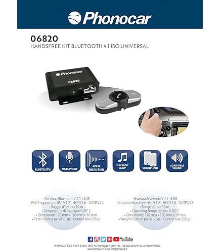 Gadget Bluetooth Auto Bluetooth Freisprecheinrichtung Mit Smartphone-App - - Car And Centralina Bluetooth Bury consciente dei prodotti della Concorrenza che acaparan attualmente il mercato, ha progettato questo semplice kit con prestazioni superiori agli altri ingannevolmente uguali, destacando le seguenti proprietà: design più sottile e moderno, una presa di alimentazione per dispositivi mobili, sistema multipunto (due telefoni allo stesso tempo) accesso alle etichette di voce su cellulare (chiamate vocali) riproduzione di musica o la voce del browser il telefono agli altoparlanti vettura attraverso formato A2DP Bluetooth o cavo con presa AUX. Acquista online e paga in contanti nel punto vendita più vicino. Scopri di più. Questo articolo: Bury CC 9048 Bluetooth-Freisprecheinrichtung mit 3-Tasten-Fernb. DE/EN/EK/FR/ES. Siamo spiacenti, non è stato possibile mostrare le informazioni a causa di un In definitiva, se vuole un kit da poco prezzo ma molto professionale e con funzionalità di invidiare ai fratelli maggiori, questa è la scelta migliore. Fornisce una connessione affidabile e costante Configurazione rapida e semplice Contenuto della confezione: scatola elettronica, telecomando, microfono, cablaggio ISO, cavo di prolunga, cavo di ricarica micro USB, istruzioni Spedizione In 24/48 ore non inviamo fuori della Península, fattura in righello.