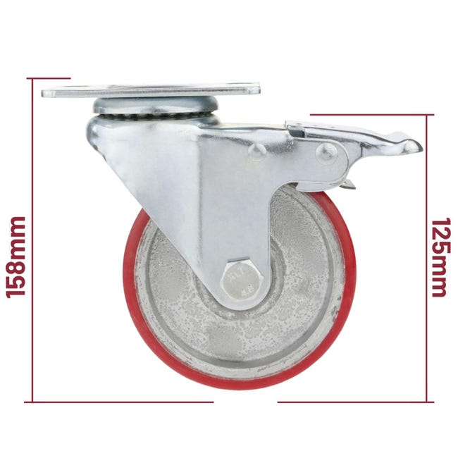 Ruote in ghisa e poliuretano TR girevoli con freno , supporto rotante piastra P con freno registrabile. Durezza 92±3 Shore A. ACCEDI; ... Il freno registrabile consente il bloccaggio della ruota e del supporto. DIMENSIONI: Svuota: RUOTE IN GHISA E PU-TR G Piastra: girevole e freno Struttura metallica fissa di alta resistenza e qualità. Interasse: 75x45 mm Portata massima: 120kg Larghezza ruota: 30 mm Ruote Per Carrelli Pesanti Ruota Mobilia Girevole Con Freno Gomma Grigia Antitraccia D.125mm Ruote Pivotanti Per Carrelli Ruota di alta qualità con cuscinetti di precisione. Ideale per mobili, sedie, tavoli, carrelli, ecc.