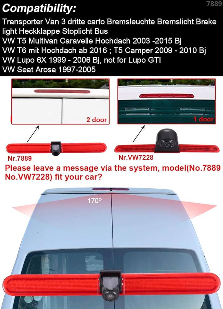 Impermeabile Telecamera Auto Posteriore, Macchina Fotografica Con Luce Freno Telecamera Retromarcia Per VW T5 Bus Transporter Multivan Caravelle Business 2003-2015 Bj : Amazon.it: Elettronica