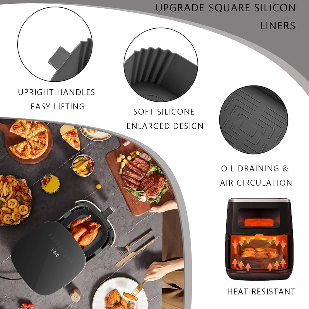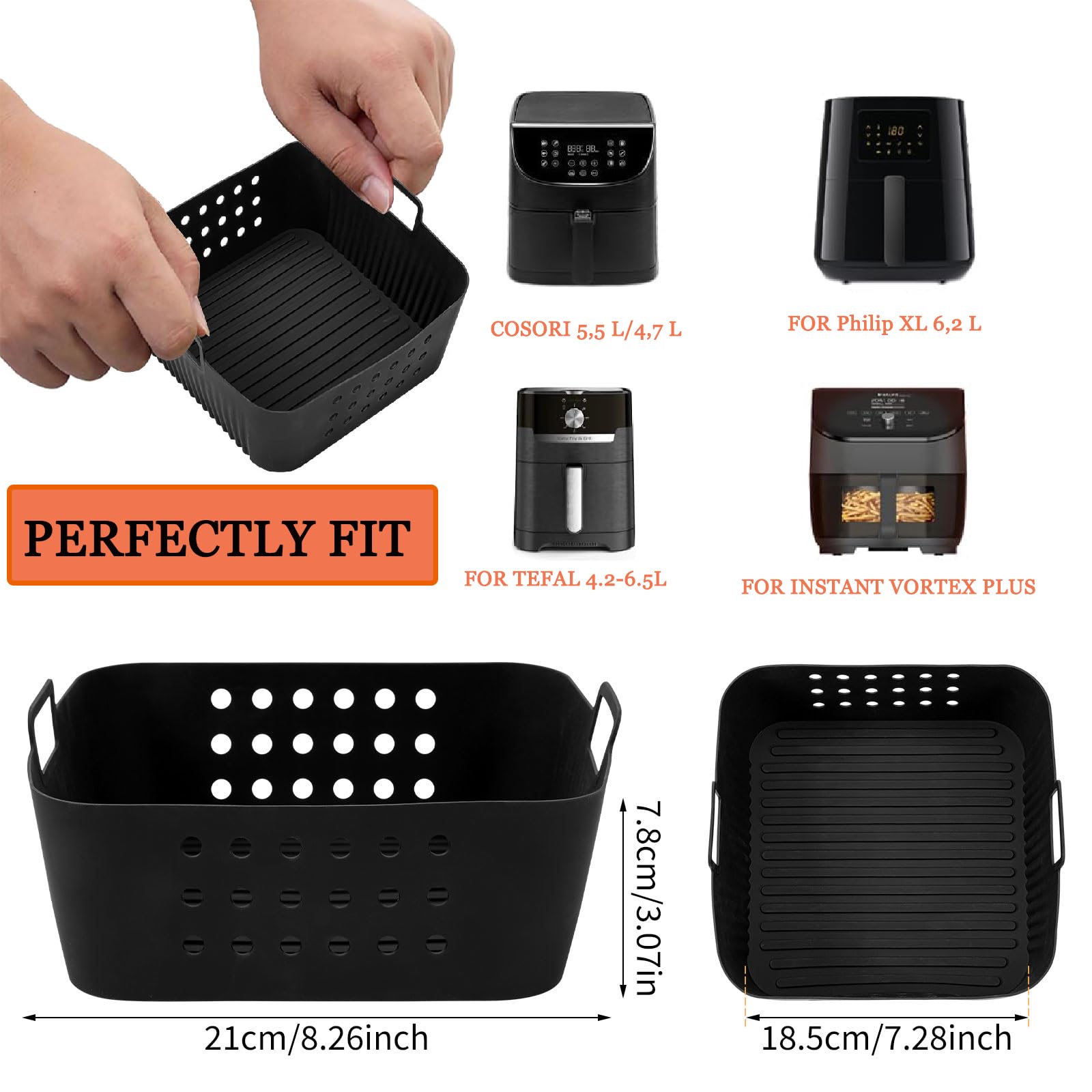 Friggitrice Ad Aria 8 Litri 2 Pezzi Teglia In Silicone Per Friggitrice Ad Aria, Cestino Per Friggitrice Ad Aria In Silicone, Pentola Accessori In Silicone Per Friggitrice Ad Aria Forno E Microonde