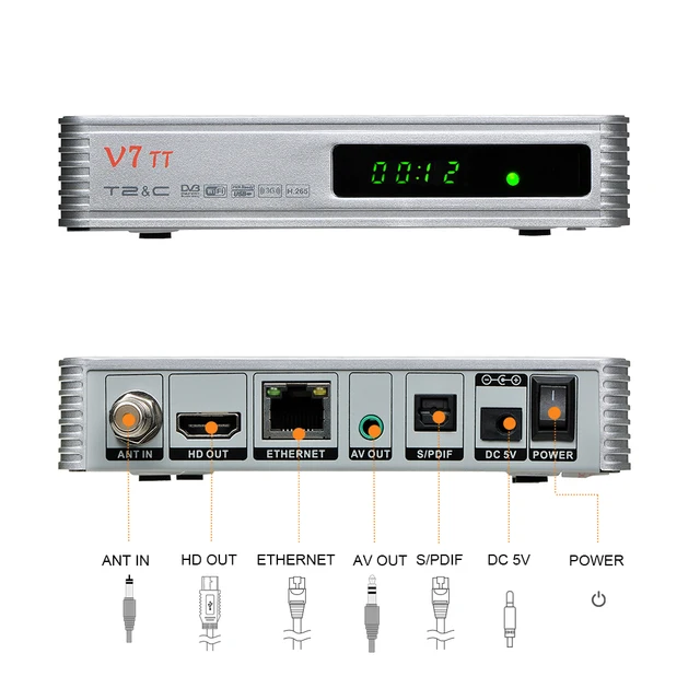 Si prega di seguire i passaggi, 1- su PC, copia il sito web e apri sul Browser, scarica il firmware più recente e salva su chiavetta USB, 2- decomprimilo, 3- collegare l'unità USB al dispositivo, la porta USB 4- accedi al menu Strumenti, scegli Aggiornamento USB 5- avvia l'aggiornamento con la modalità ALL Elenco dei pacchetti GT MEDIA V7 TT Decoder Digitale Terrestre, Telecomando (batterie non incluse), Cavo HDMI, Antenna WiFi USB, Alimentazione elettrica (DC 5V 2A), Manuale d'uso, Adattatore ANT Attivare l'LCN prima di cercare i canali, la sequenza dei programmi verrà ordinata secondo gli standard europei. 265 HEVC (10bit) L'Italia passa a un nuovo standard televisivo, DVB-T2 HEVC 10bit, con questo ricevitore è possibile ricevere canali HD, inclusi i canali 100 e 200.WIFI / ETHERNET Viene fornito con un'antenna wifi USB, supporta anche dongle USB 3/4G a piena velocità ed Ethernet (10/100M), può connettersi al cavo di rete, più stabile e fluido. Compra Decoder DVB-T2 HD GT MEDIA V7 TT Full HD 1080p Ricevitore Digitale Terrestre DVB-T2/C Cavo Ricevitore H.265 HEVC 10bit con Antenna WiFi USB/Ethernet, Supporto PVR Registratore Timeshift EPG. SPEDIZIONE GRATUITA su ordini idonei 【GT MEDIA V7TT】Decoder Digitale Terrestre, che non supporta il segnale satellitare. GT MEDIA V7 TT Decoder Digitale Terrestre Compatibile con il nuovo standard televisivo DVB-T2 H. Decoder Digitale Terrestre Decoder DVB-T2 HD Dongle NANO T265 Ricevitore Digitale Terrestre, Full HD, DVB-T2, H265 HEVC, 10 Bit, FTA, USB, HDMI, Sensore IR, Supporto USB Media Player, Telecomando Universale 2in1, Main 10 - XO Decoder Satellitare Tv Sat 【ANT IN】 Interfaccia filettata, con un adattatore per abbinare la conversione di DVB-T / T2 / DVB-C, la trasmissione del segnale sarà più stabile e veloce. 【DVB-T2 HEVC main 10bit】 Sono conformi ai più recenti standard europei di trasmissione televisiva digitale terrestre, i canali televisivi 100-200 sono supportati. 【WiFi 2.4G ed ETHERNET】 Viene fornito con antenna WiFi USB, collegare l'antenna wifi o connettersi a un cavo di rete, supportare il protocollo CS. 2 in 1 Telecomando universale Impara il telecomando dalla TV, incluso il pulsante del volume e il pulsante di accensione. Uscita SPDIF per cavo ottico e dispositivo. EPG 7 giorni guida elettronica ai programmi.