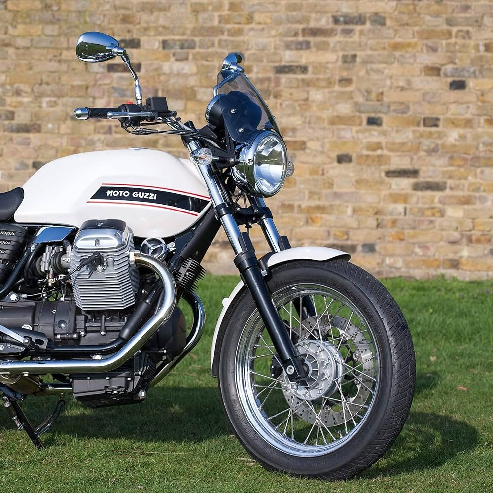 Cupolino fume scuro Satinato Mod. Sport Biondi per Moto Guzzi V7 e V9 Realizzato in AVS da 3mm Finitura Trasparente Fumé Compatibile con Moto Guzzi V7 e V9 (vedi sotto i modelli Cupolino Guzzi V7 Originale Cupolino Sport Fumè Per Moto Guzzi V7 E5 / V7 III / V9 Bobber E4-e5 Parabrezza Guzzi V7 Cupolino per moto fumè scuro specifico con kit di montaggio incluso.